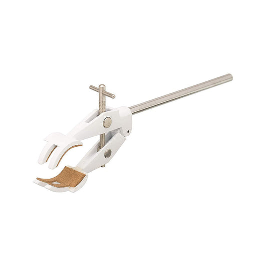4 Prong Zinc Casted Retort Clamp with Cork Liners in the jaws and mounted on a MS Rod (1)