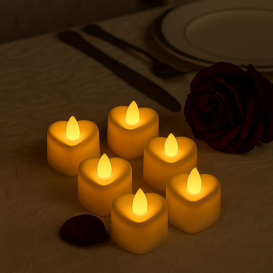 LABZIO Flameless LED Heart-Shaped Tea Light Candles |Compact Decorative Flickering Diya Lights 4 cm Width × 2 cm Height | Ideal for Pooja Diwali, Temple, Balcony & Room Décor|Plastic Build | Pack of 6