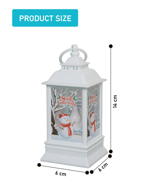 LABZIO Square Lantern Lamp Small Antique | Battery Operated LED Hanging Lantern for Indoor & Outdoor Use | Flameless & Smokeless Acrylic Tent Light | Snowman White 6X14 Cm
