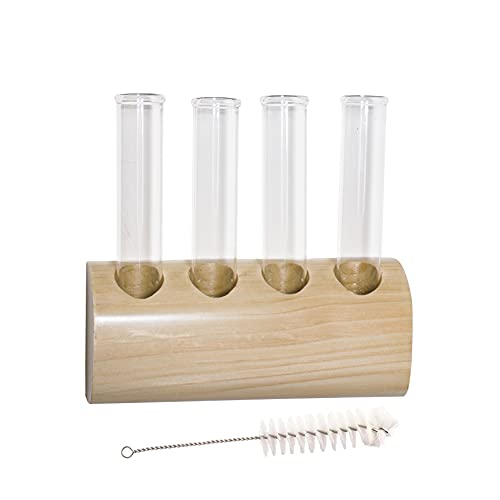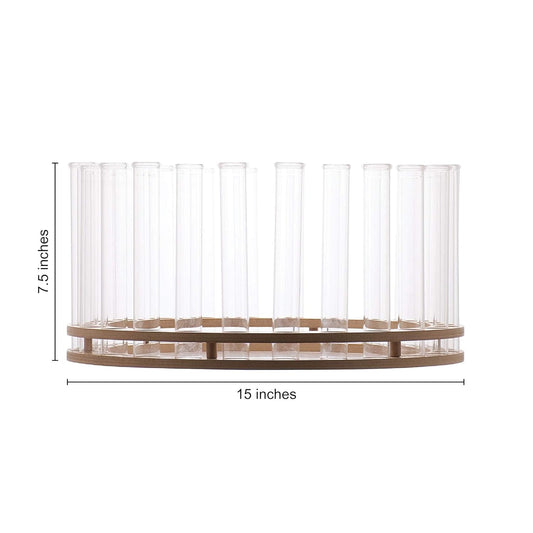 Labzio Home - Flower Vase in a Artistic Wooden Stand with 3.3 borosilicate glass tube, Pack of 1