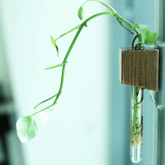 Labzio Home - Elegant wooden flower vase with a glass test tube for homes, offices, cafes, etc