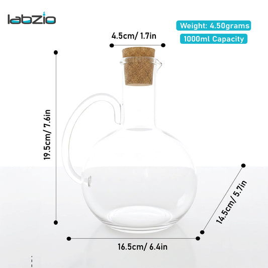 Labzio home - Wine/ Juice Decanter Hand blown lead free clear borosilicate glass with spout and cork stopper