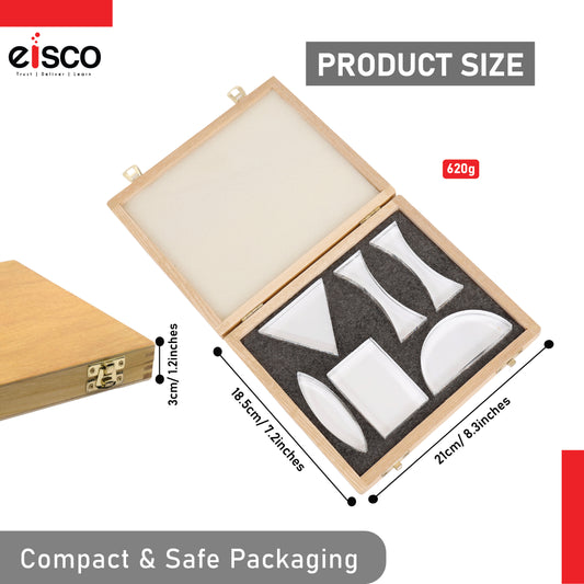 Eisco Premium Acrylic Prisms — Set of 6, Different Shapes, Supplied in Wooden Box | Used in Physics Laboratory | Reflection and Refraction Leaning | 25.8 x 20.8 x 4.8 cm; 620 g
