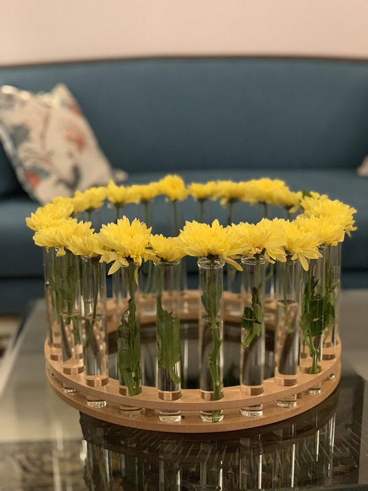 Labzio Home - Elegant wooden flower vase with a glass test tube for homes, offices, cafes, etc