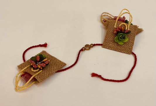 LABZIO Roli Chawal Bags For Tikka — Handmade Jute Small Sqaure Bags/Potli | Decorated With Flower | Perfect For Rakhabandhan, Bhai Dooj And Other Occasion/Festivals | Pack Of 4