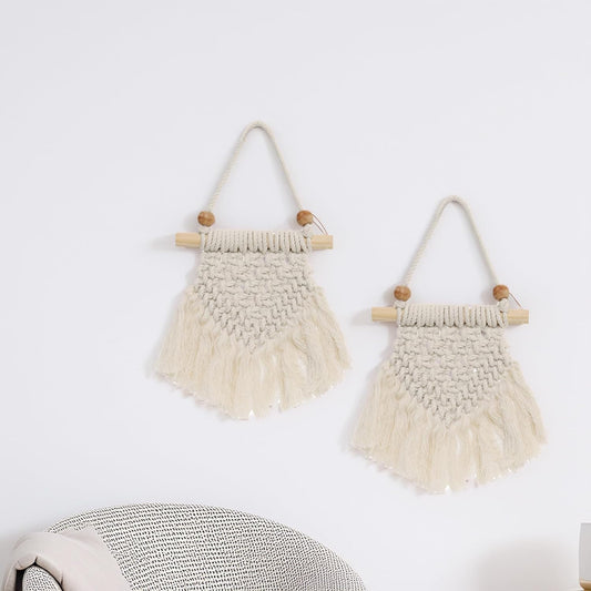 LABZIO Macrame Wall Hanging Set of 2 | Boho-Chic Woven Tapestry for Home Decor | Rustic Cotton Rope Art with Wooden Beads and Bamboo Stick | Perfect for Living Room, Bedroom