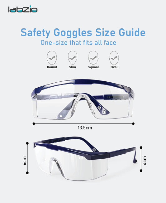 LABZIO - Safety Goggles With Side Protection & Adjustable Temples For Unviversal Fit, Chemical Resistant (Pack of 5 Goggles)