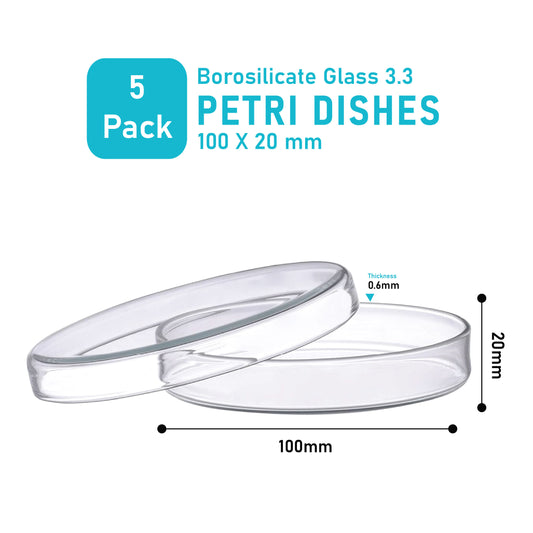 Labglass by EISCO - Premium Petri Dish, Heavy Borosilicate Glass 3.3, Can Withstand Wet or Dry Repeated Sterilisation, Beaded Edges for Strength (100 X 20 mm, Pack of 5)Regular price Rs. 999.00Regular priceUnit price / perRs. 1,985.00Sale price Rs. 999.00Sale