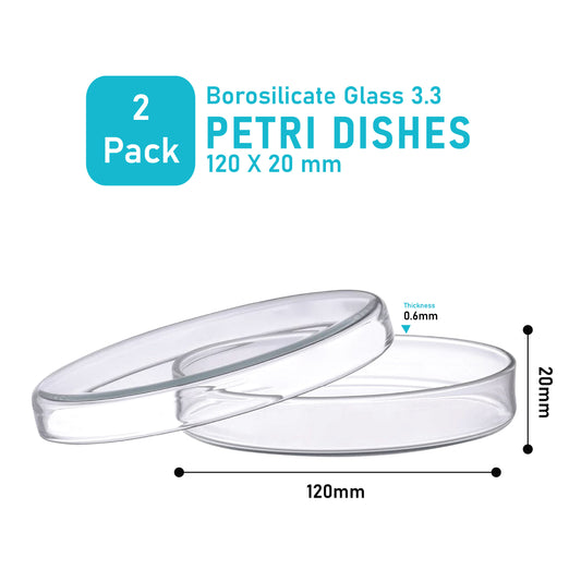 Labglass by EISCO - Premium Petri Dish, Heavy Borosilicate Glass 3.3, Can Withstand Wet or Dry Repeated Sterilisation, Beaded Edges for Strength (120 X 20 mm, Pack of2)Regular price Rs. 549.00Regular priceUnit price / perRs. 1,119.00Sale price Rs. 549.00Sale