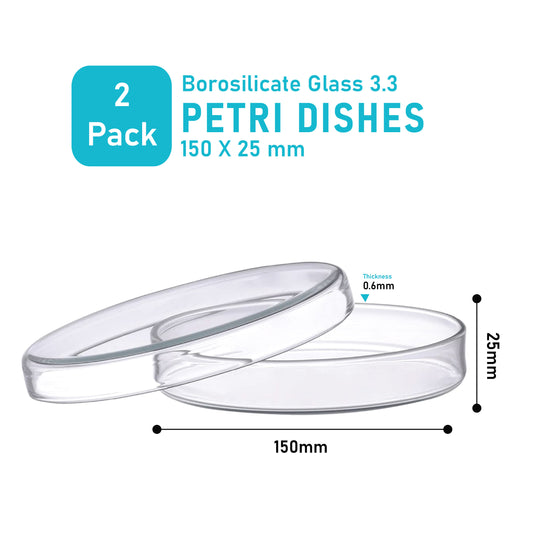 Labglass by EISCO - Premium Petri Dish, Heavy Borosilicate Glass 3.3, Can Withstand Wet or Dry Repeated Sterilisation, Beaded Edges for Strength (150 X 25 mm, Pack of 2)Regular price Rs. 699.00Regular priceUnit price / perRs. 1,426.97Sale price Rs. 699.00Sale