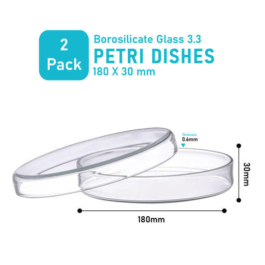 Labglass by EISCO - Premium Petri Dish, Heavy Borosilicate Glass 3.3, Can Withstand Wet or Dry Repeated Sterilisation, Beaded Edges for Strength (180 X 30 mm, Pack of 2)Regular price Rs. 1,449.00Regular priceUnit price / perRs. 2,870.00Sale price Rs. 1,449.00Sale
