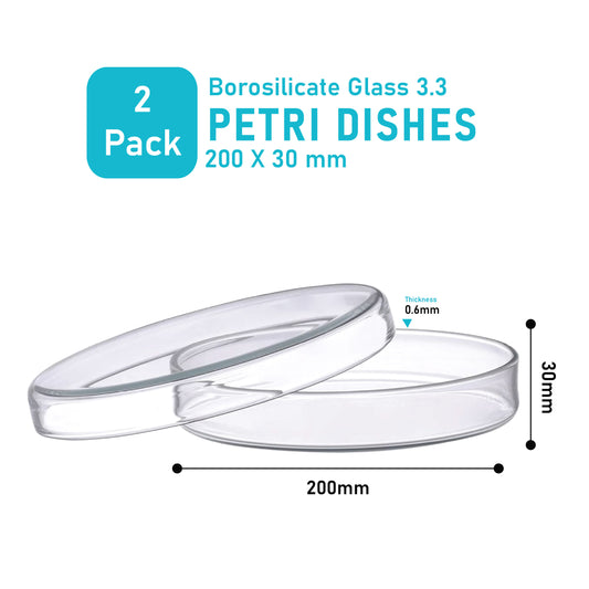 Labglass by EISCO - Premium Petri Dish, Heavy Borosilicate Glass 3.3, Can Withstand Wet or Dry Repeated Sterilisation, Beaded Edges for Strength (200 X 30 mm,Pack of 2)Regular price Rs. 1,449.00Regular priceUnit price / perRs. 3,051.00Sale price Rs. 1,449.00Sale
