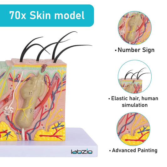 Labzio - Human Skin Anatomical Model | Enlarged 70 Times Premium Quality | Deepen Your Knowledge About Human Skin With This Skin Model