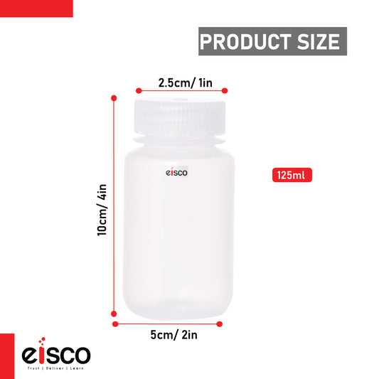 Polypropylene Reagent Bottle, 125 ml, Wide Neck, Autoclavable, Leak Proof, Pack of 12