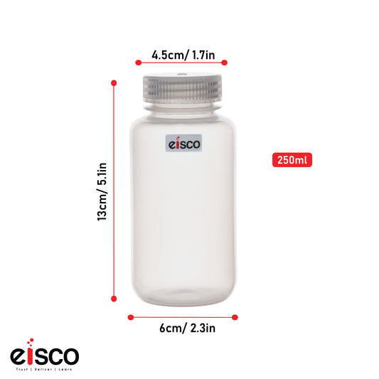 Polypropylene Reagent Bottle, 250 ml, Wide Neck, Autoclavable, Leak Proof, Pack of 10