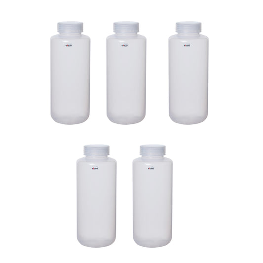 Polypropylene Reagent Bottle, 1000 ml, Wide Neck, Autoclavable, Leak Proof, Pack of 5