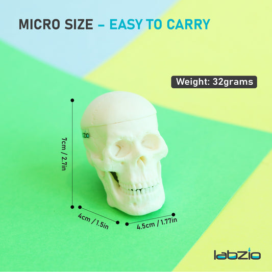 Micro skull model , 1/4 th natural size, 3 part anatomical learning skeleton head for students- easy to carry, pack of 1