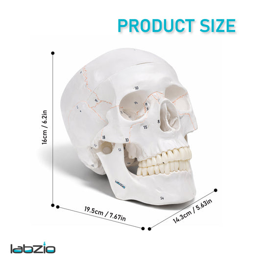 Labzio- 22 part human skull,life size, 22 individual bones,easy learning anatomy for students in detail, detailed key card included