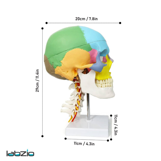 Labzio Colored Human Skull Model — Life-Size 3-Part Anatomical Skull with 14 Bones, Removable Calvarium & Articulating Jaw | Skull for Anatomy, Decor, Dental Students