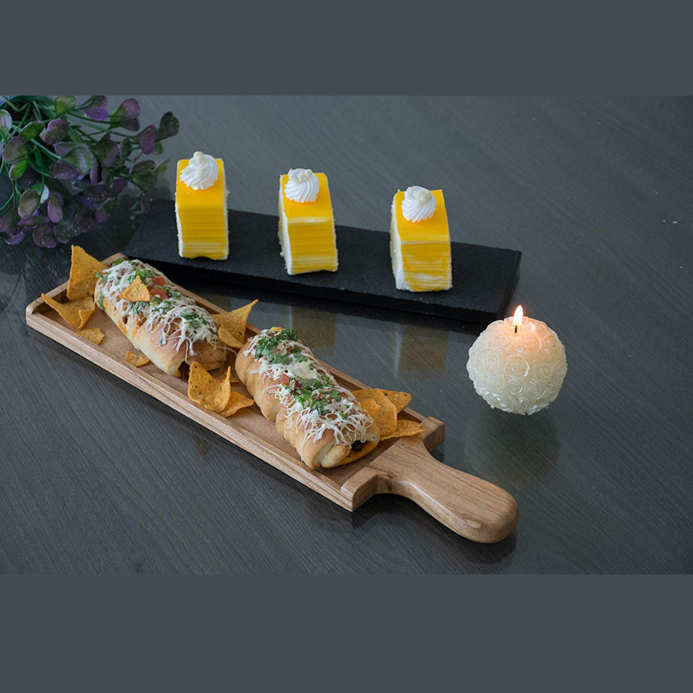 Labzio Home - STYLISH SERVING FOOD PLATTER for SNACKS/ELEGANT CHEESE BOARD/MODERN DIP TRAY, Slate 14"X 4" rectangle
