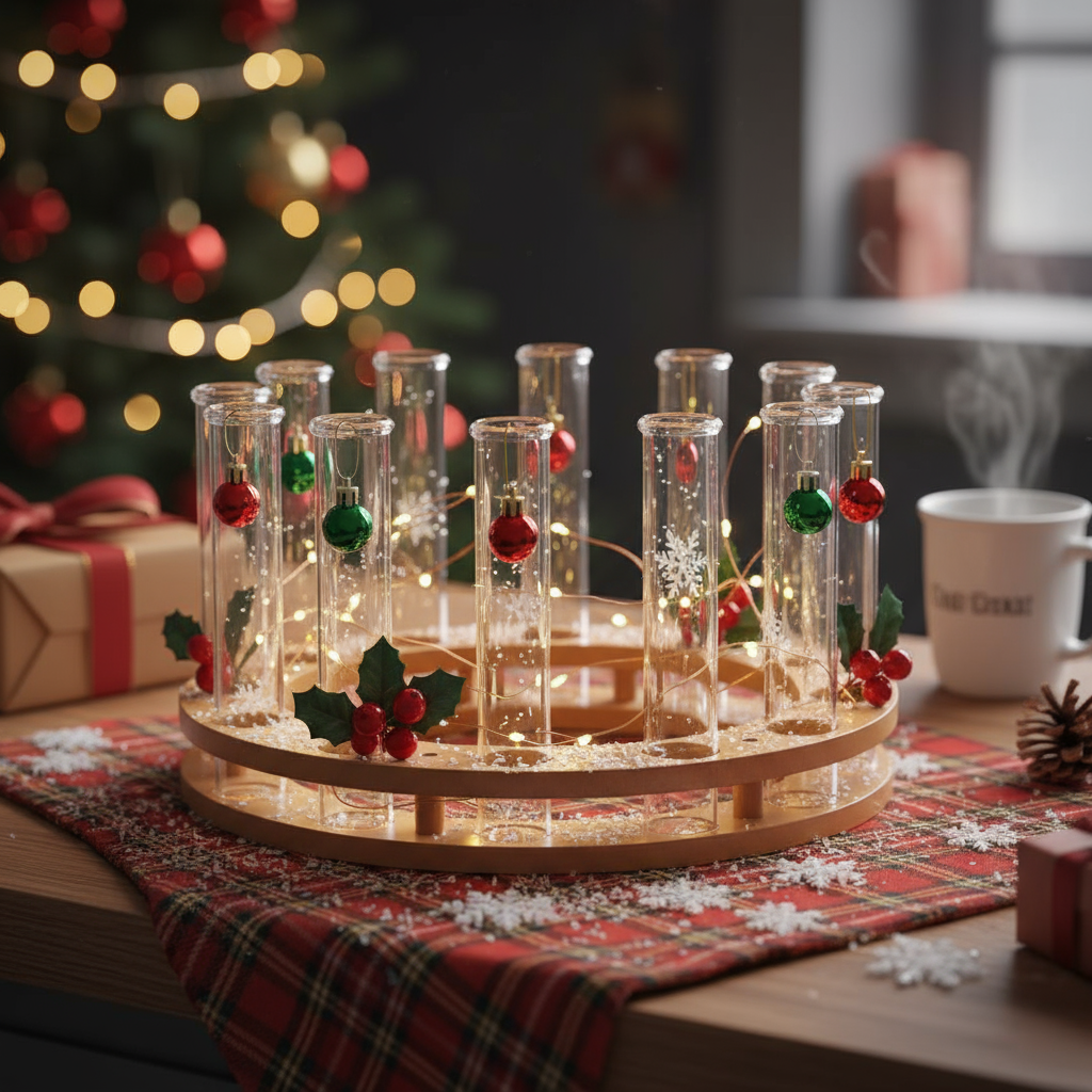Labzio Wooden Flower Vase – Handcrafted Decorative Stand with 3 Borosilicate Glass Test Tubes | Perfect for Home, Office, Living Room, Indoor Plants, Bedroom & Wedding Décor Gift