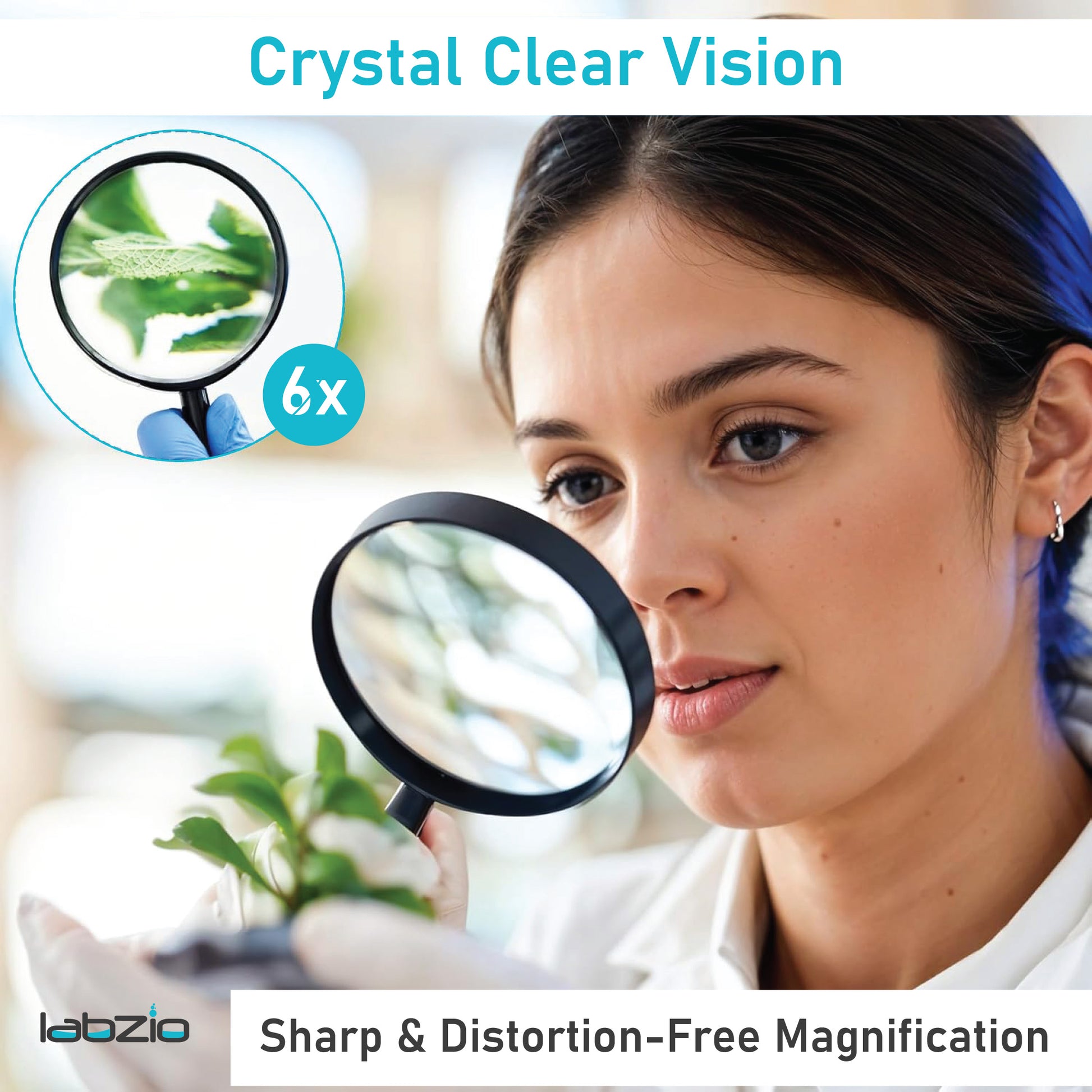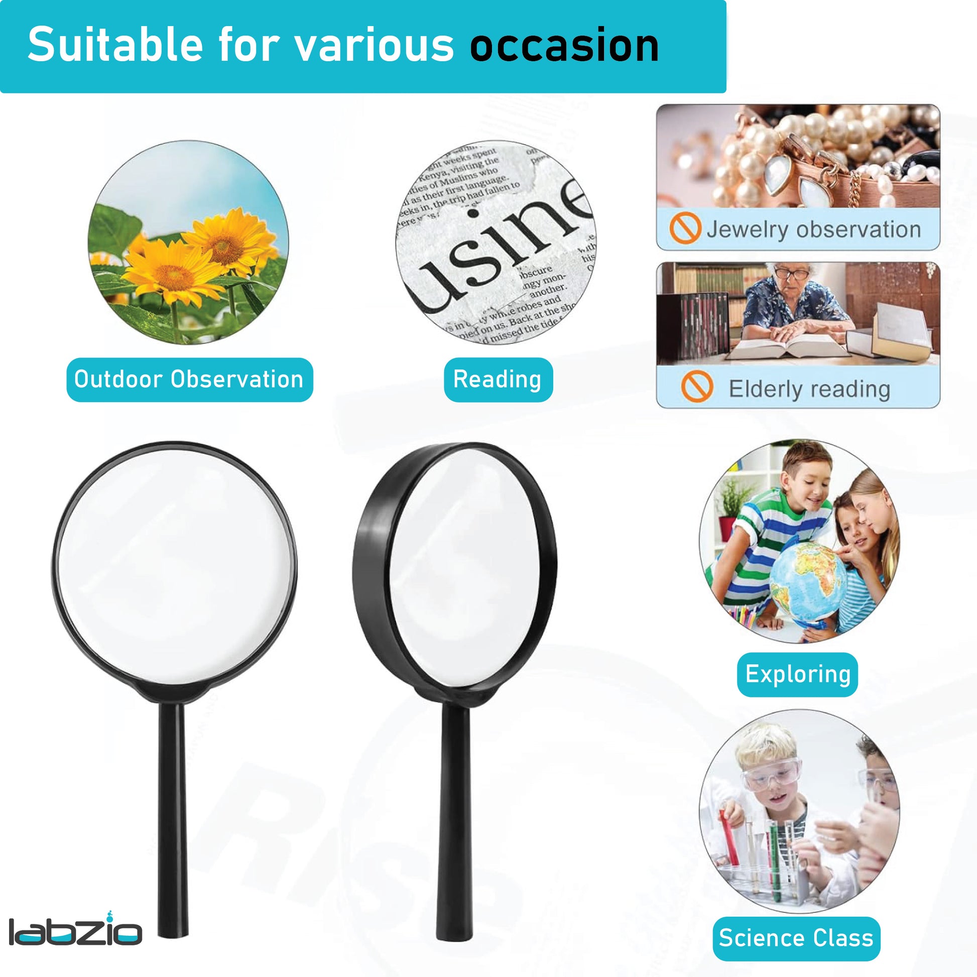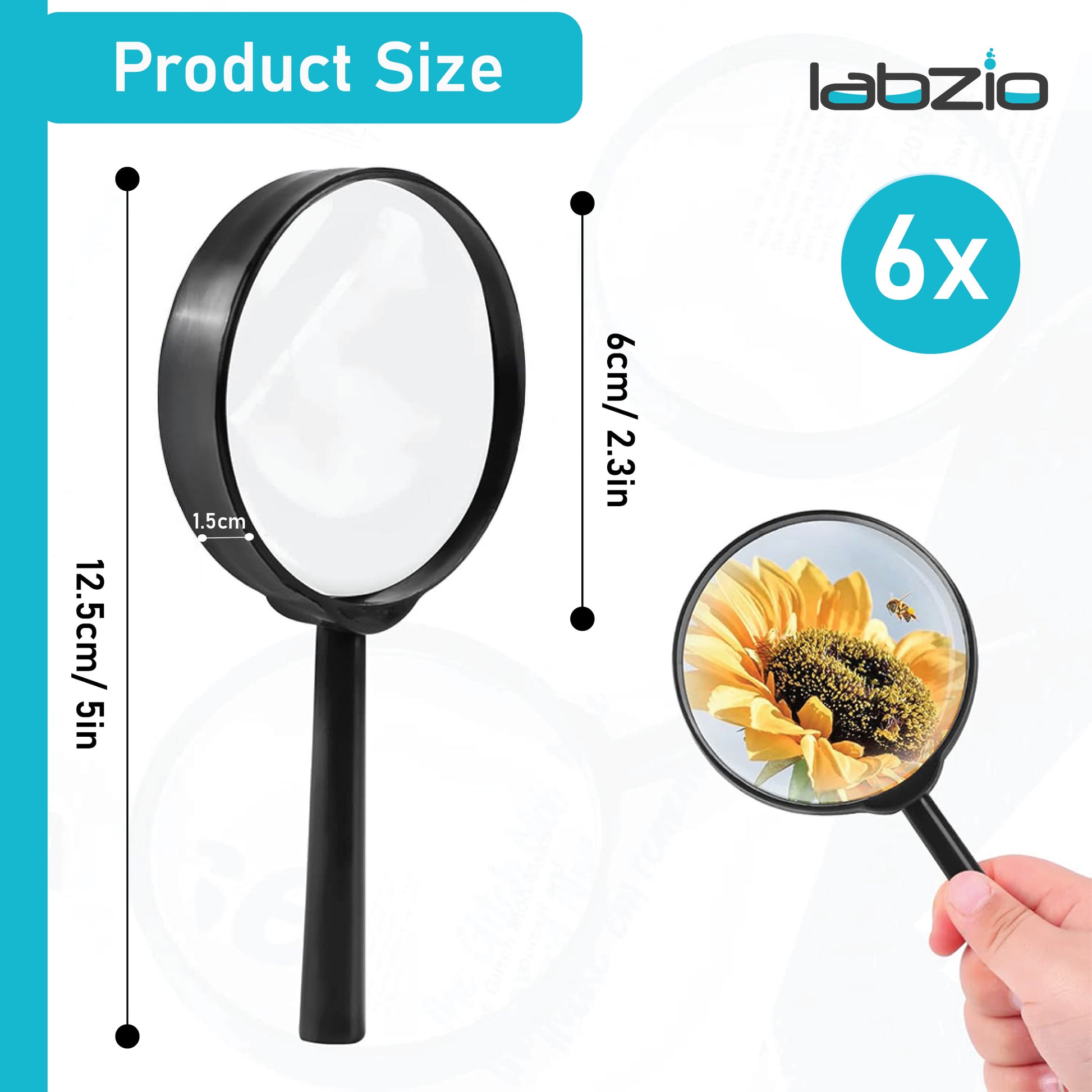 Labzio 60mm Hand Lens Magnifier — Black Magnifying Glass with Crystal Clear Lens | Compact Design and Lightweight Build | Comfortable Grip for Precision Work At Laboratory ( Pack Of 1 )
