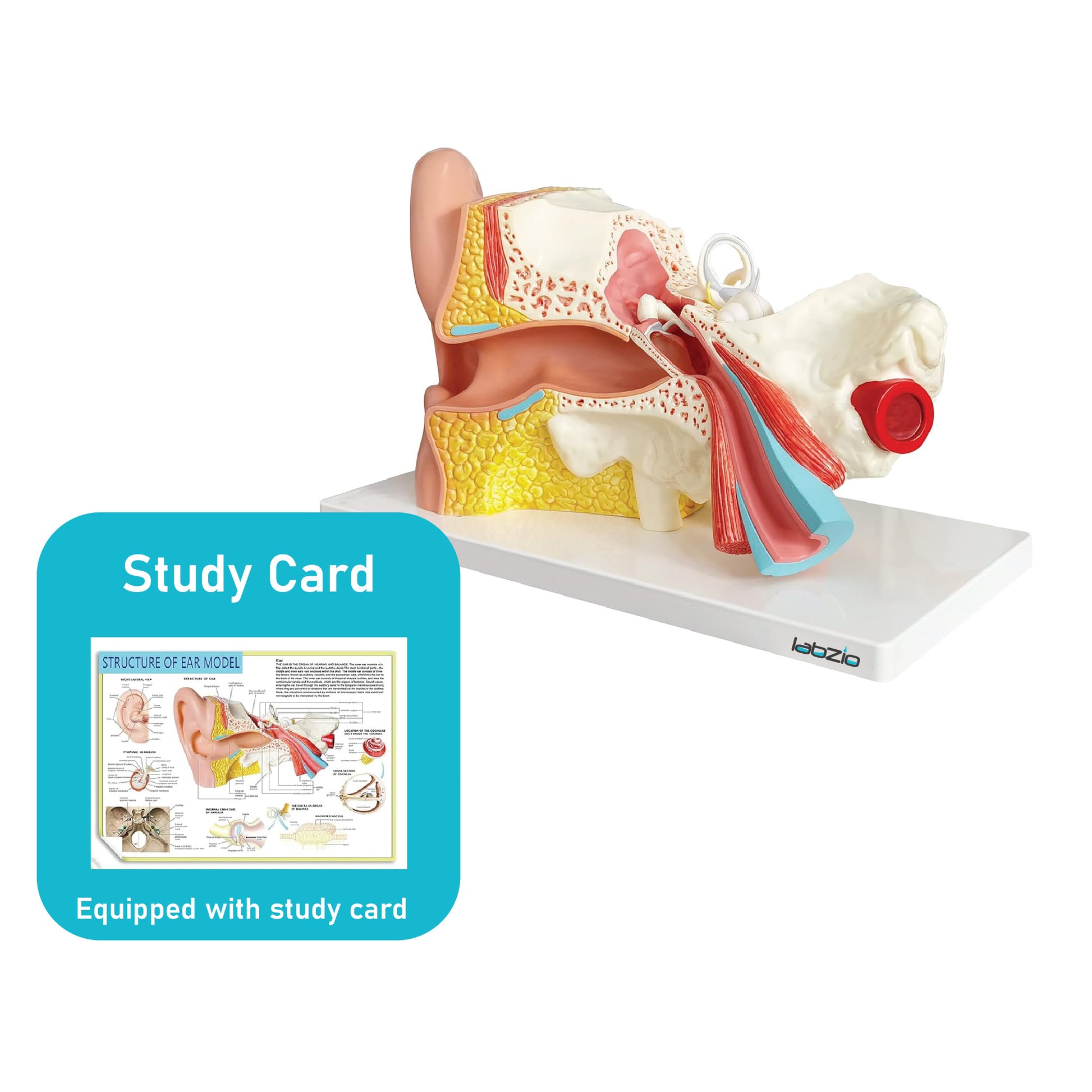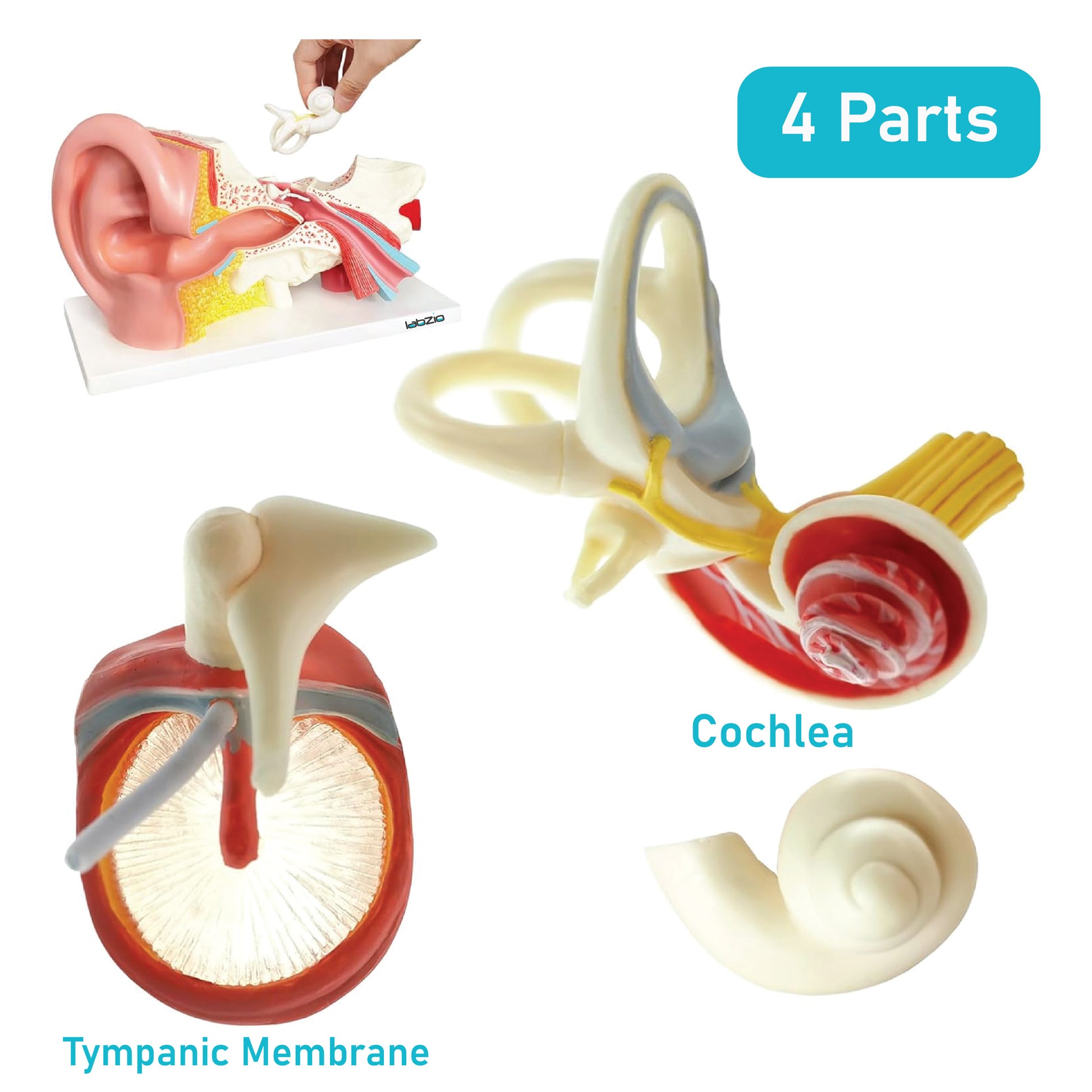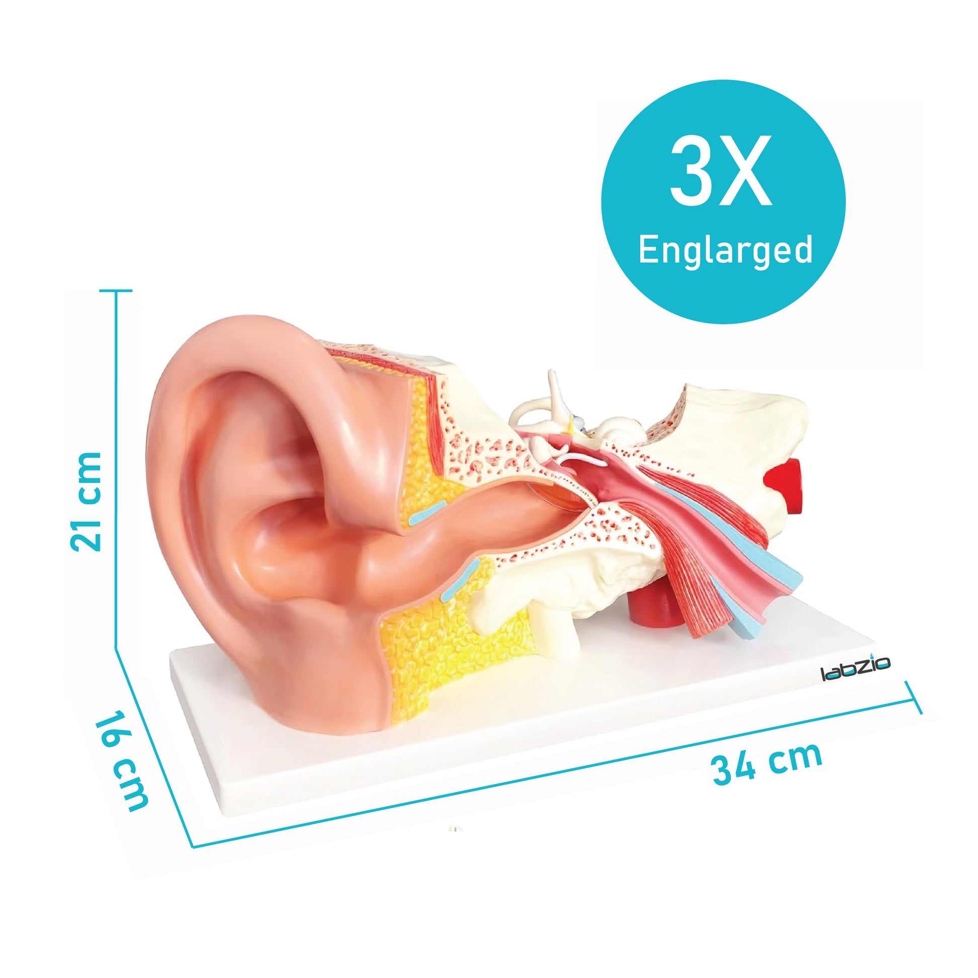 Labzio Premium Human Ear Model - Enlarged 3x, 3-Part Anatomically Accurate Ear Anatomy Model with Detailed Key Card for Educational and Professional Use