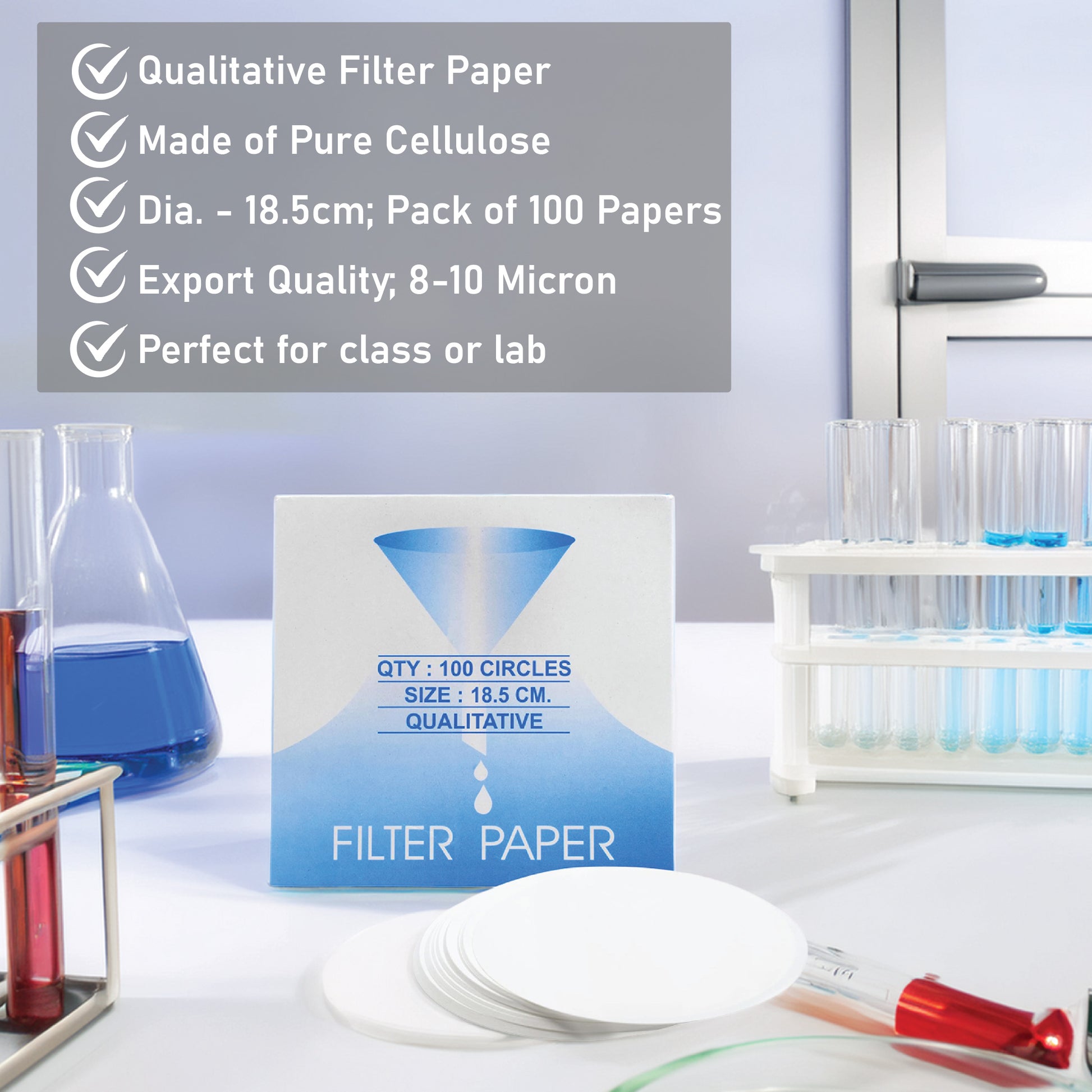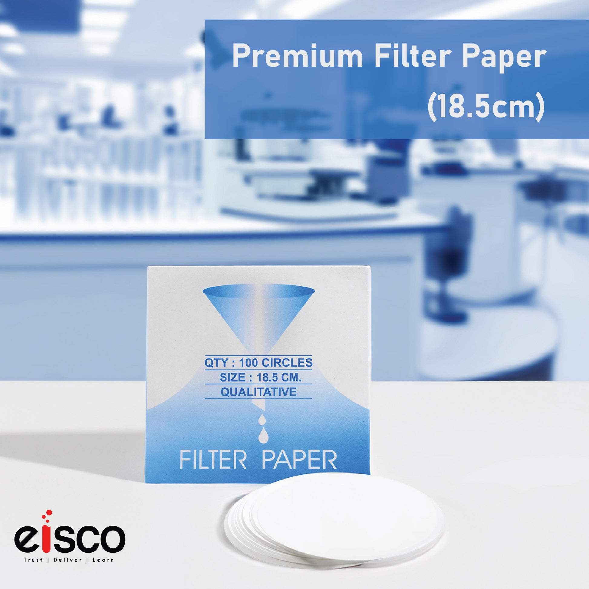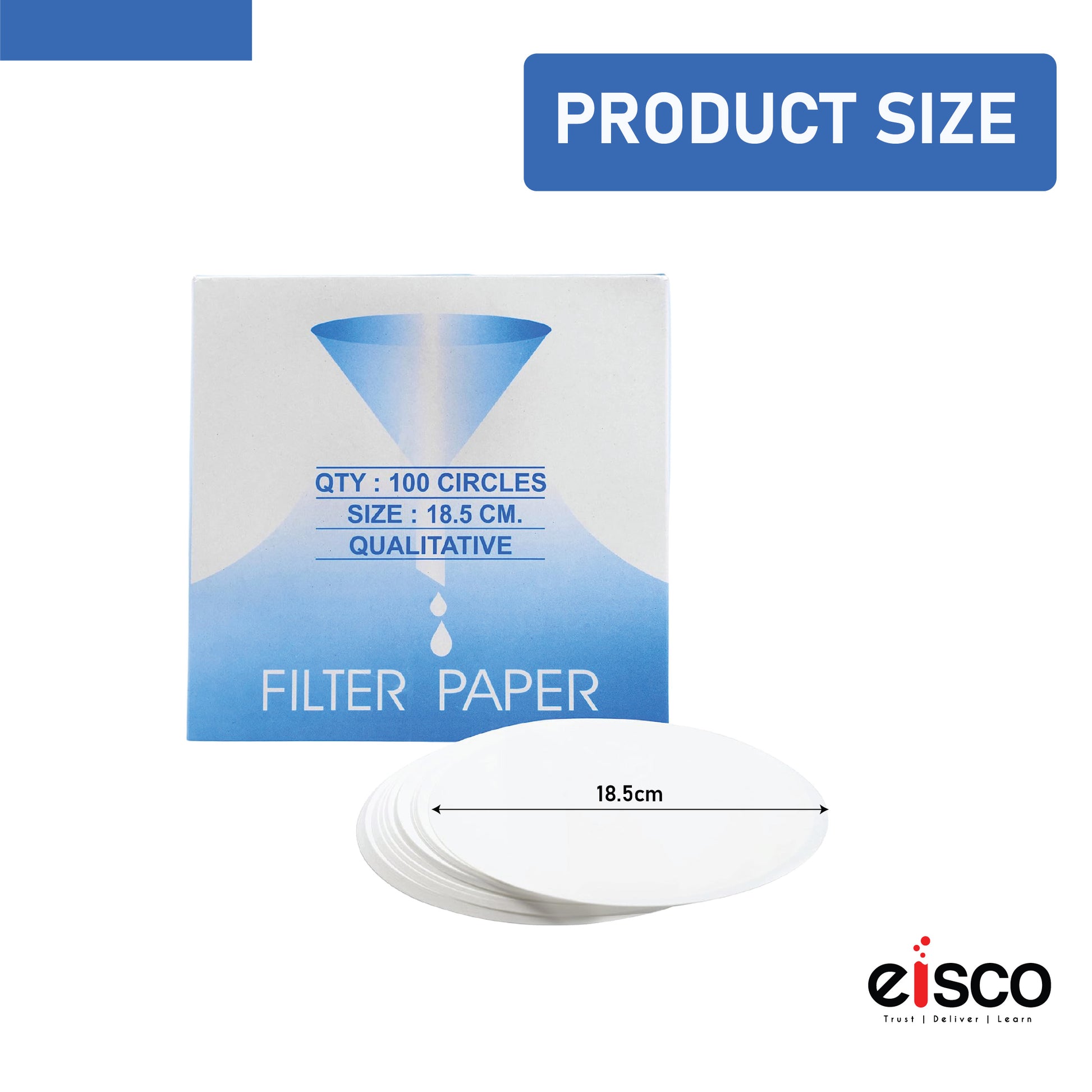 Eisco Premium Filter Paper — Qualitative Filter Paper for Laboratory, Class, for Experiments and More, White,18 Cm Diameter, Pack of 100, Made of Pure Cellulose, 8-10 Micron