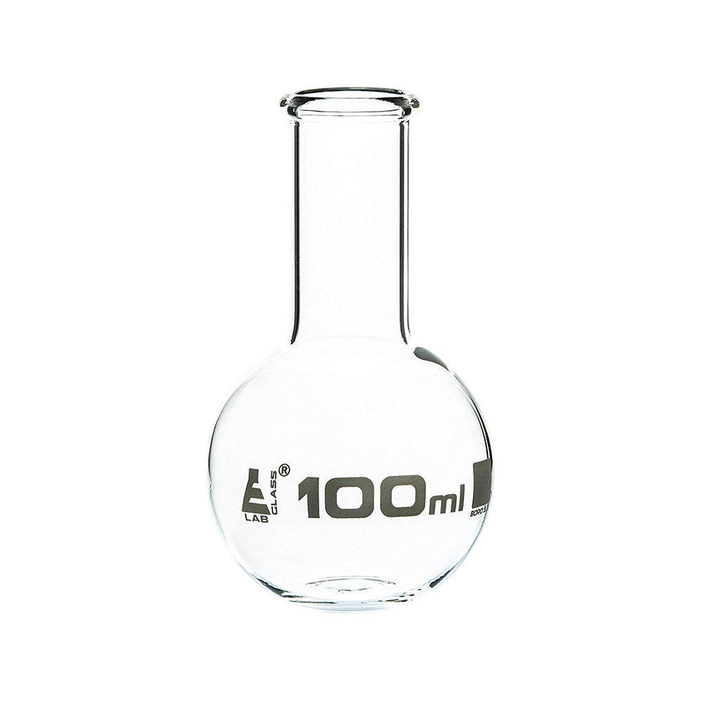 Eisco Flat Bottom Boiling Flask 100ml, Borosilicate Glass 3.3, Heat & Acid Resistant, Narrow Neck, Beaded Rim, Lab Glassware for Chemistry, Distillation, Scientific Use (Pack of 12)