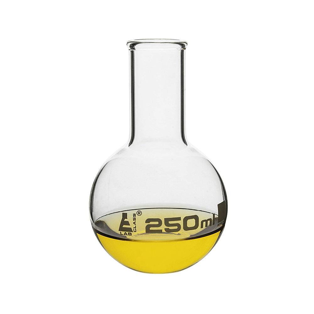 Flat Bottom Boiling Flask, 250 ml, Narrow Neck with Beaded Rim, Made of Borosilicate Glass 3.3, Pack of 12