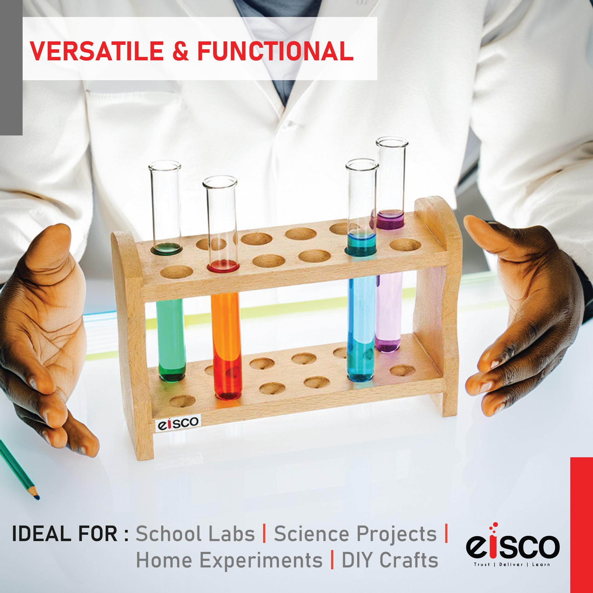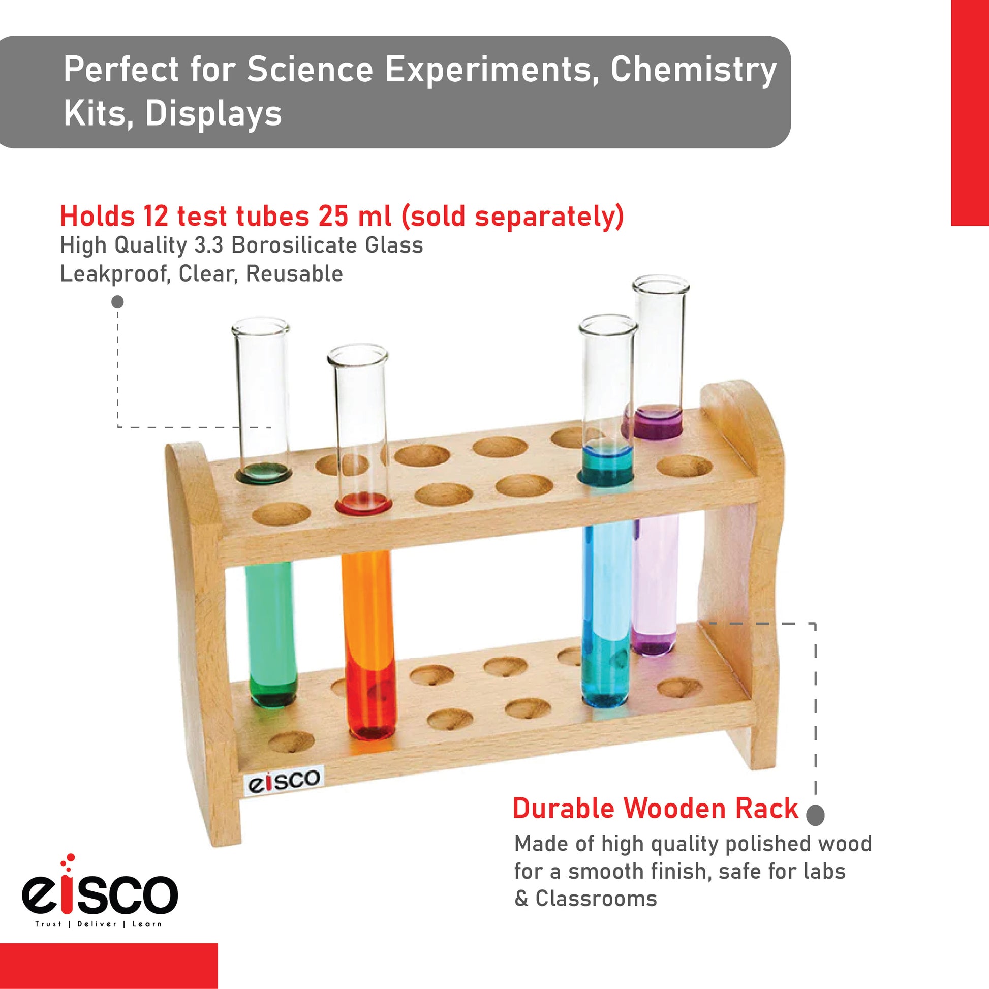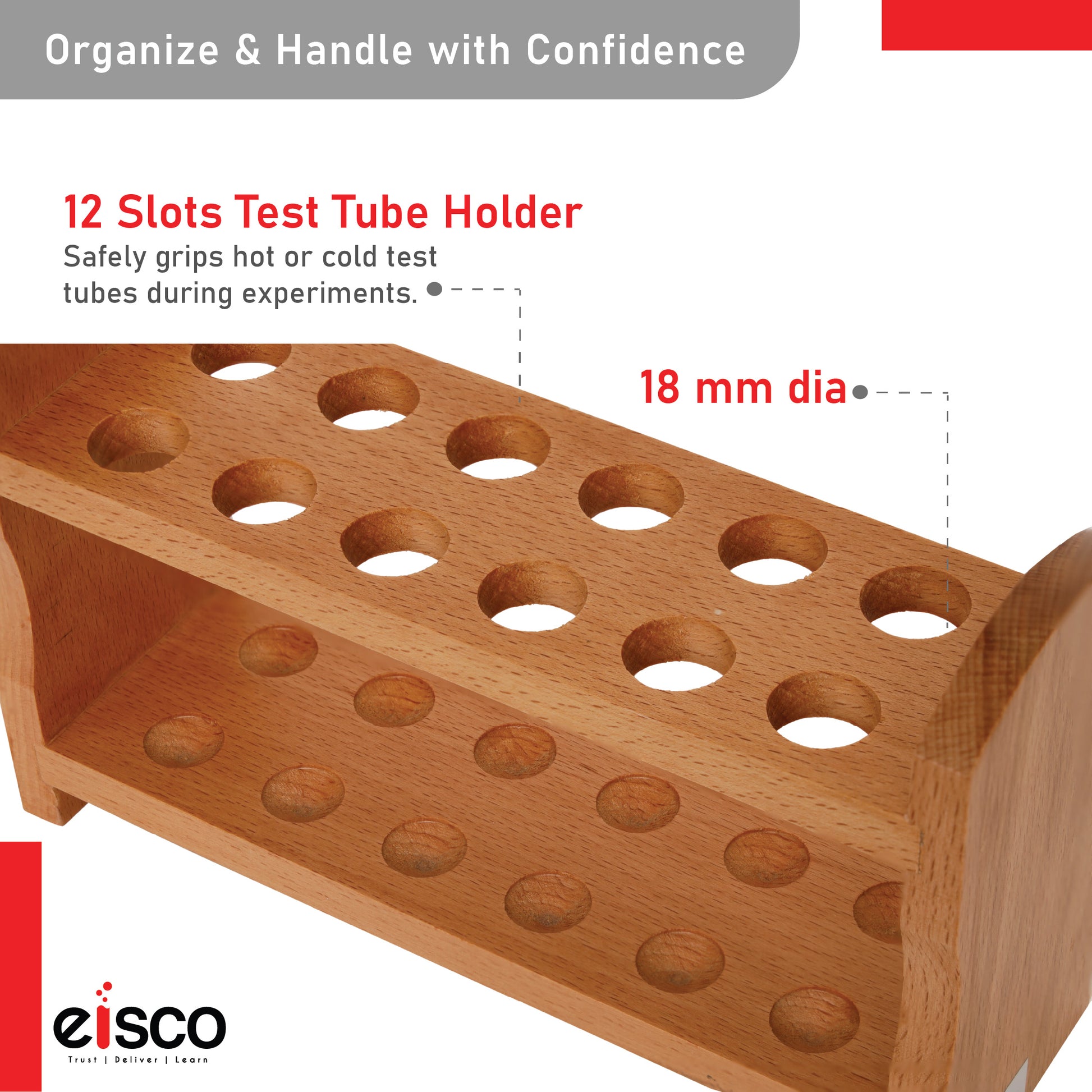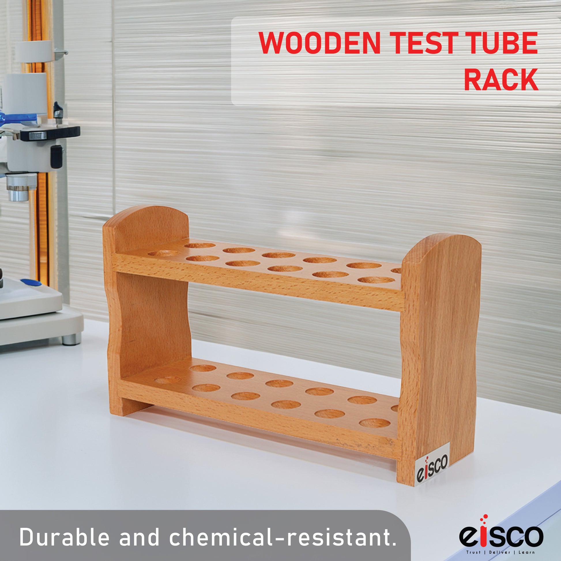Eisco Wooden Test Tube Rack – Durable Lab Stand for Test Tubes, Holds Multiple Tubes, Chemical Resistant, Polished Wood, Ideal for Science Labs, Chemistry, Biology & Home Experiments