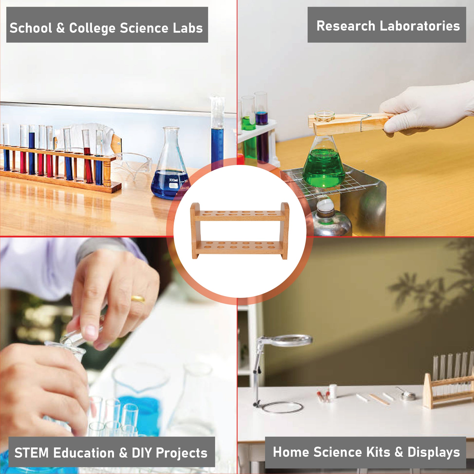 - EISCO premium wooden test tube stand