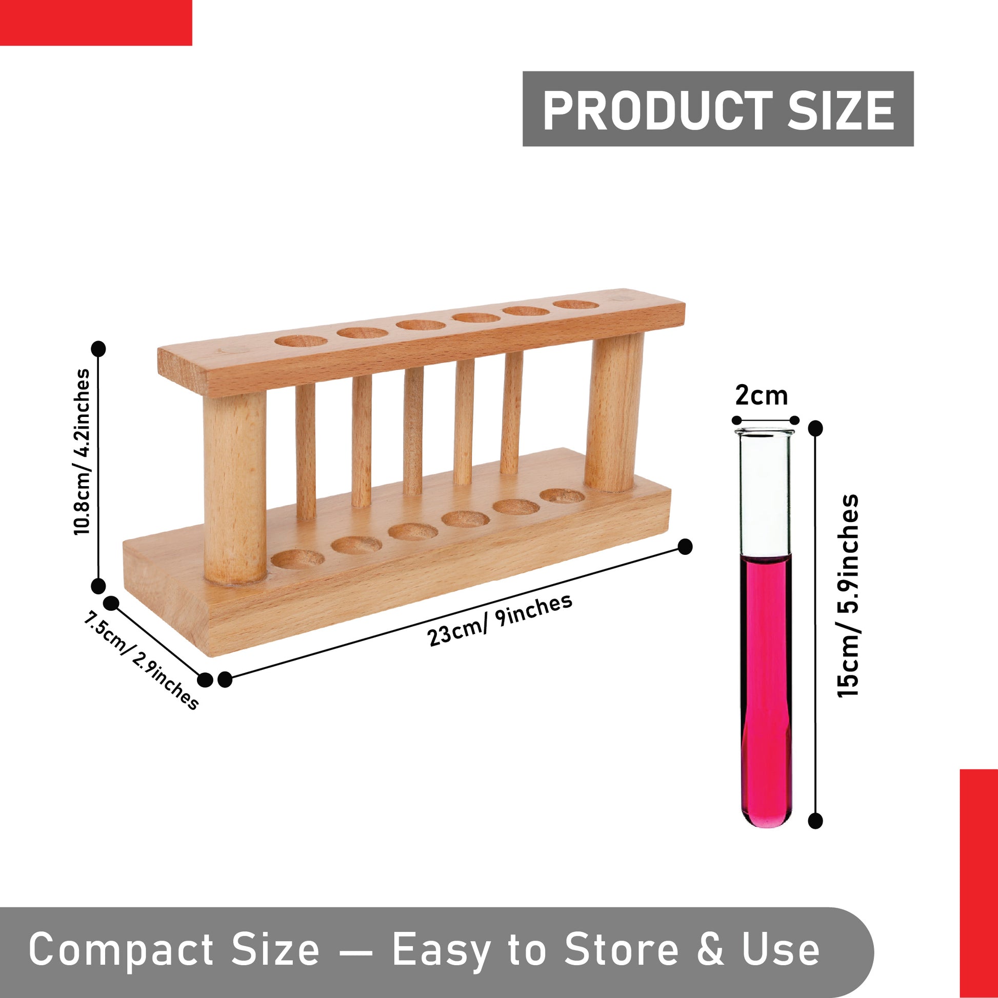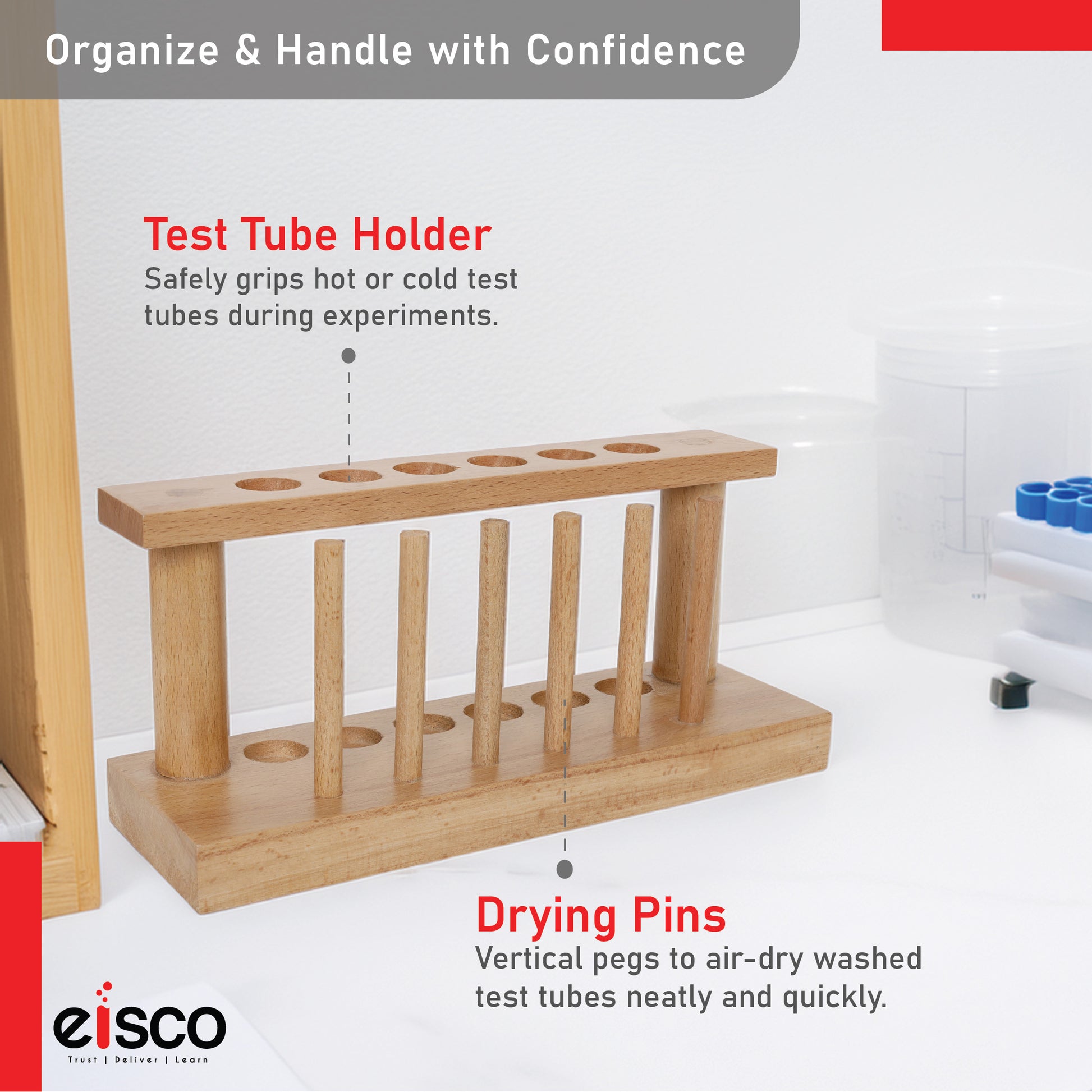 EISCO Premium Wooden Test Tube Rack with Drying Pins | Holds 6 Tubes (Up to 18mm Dia) | Includes 6 x 25ml Tubes | Polished & Durable Stand for Lab & Home Use | Combo Pack for Science Experiments