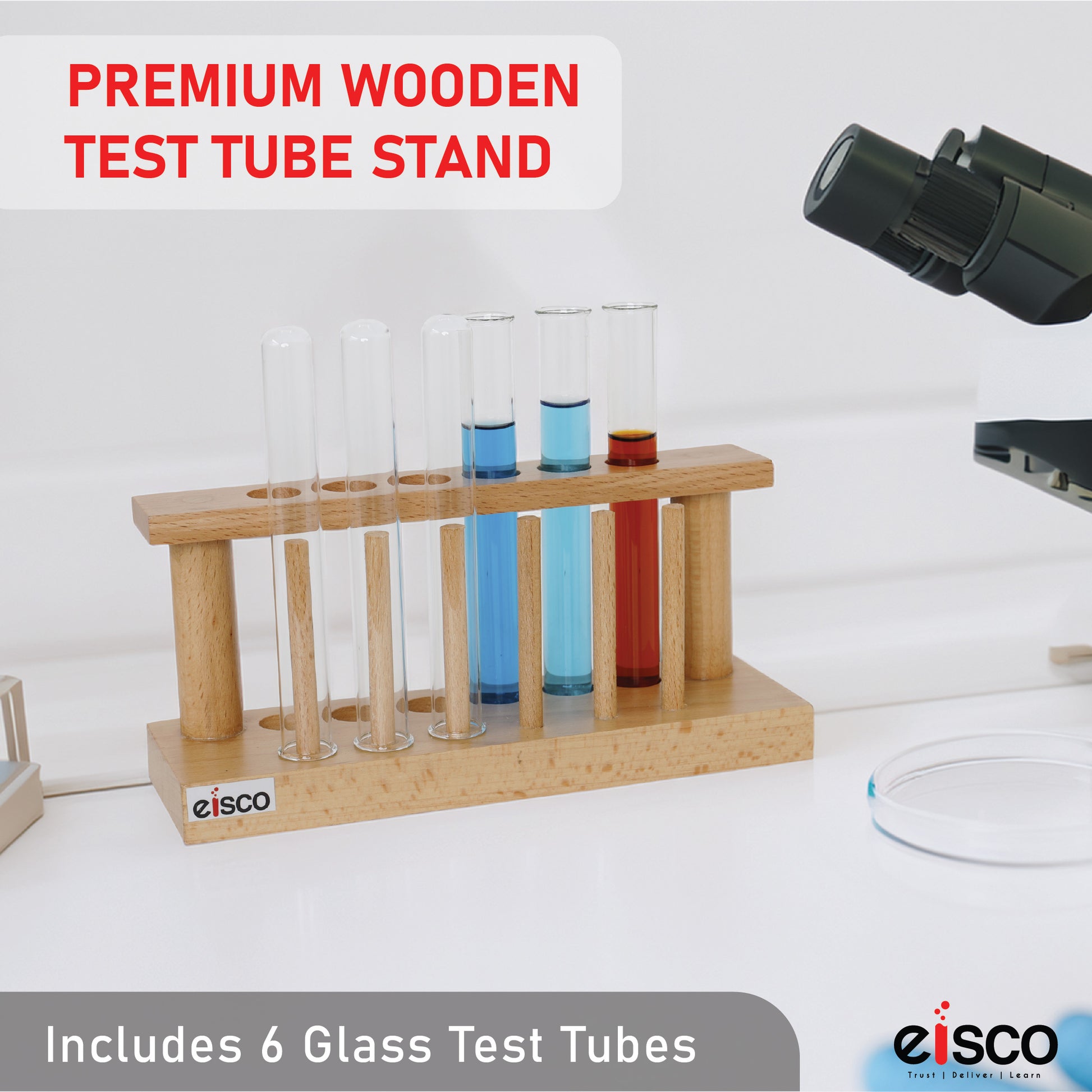 - EISCO combo pack of wooden test tube stand with 6 test tubes