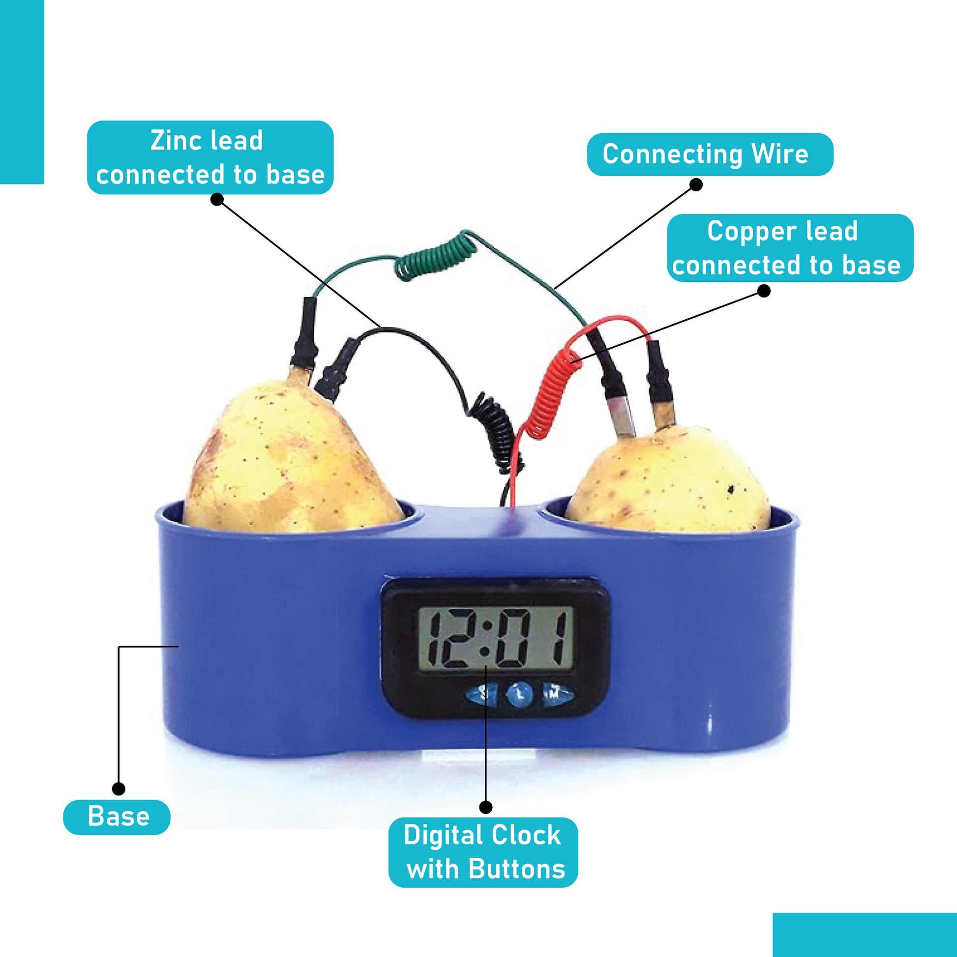 Eisco DIY Potato/Lemon Clock – Fun Science Experiment Kit, Battery-Free Electricity Generator, STEM Toy for Kids, School Science Fair, Learning & Educational Lab Projects