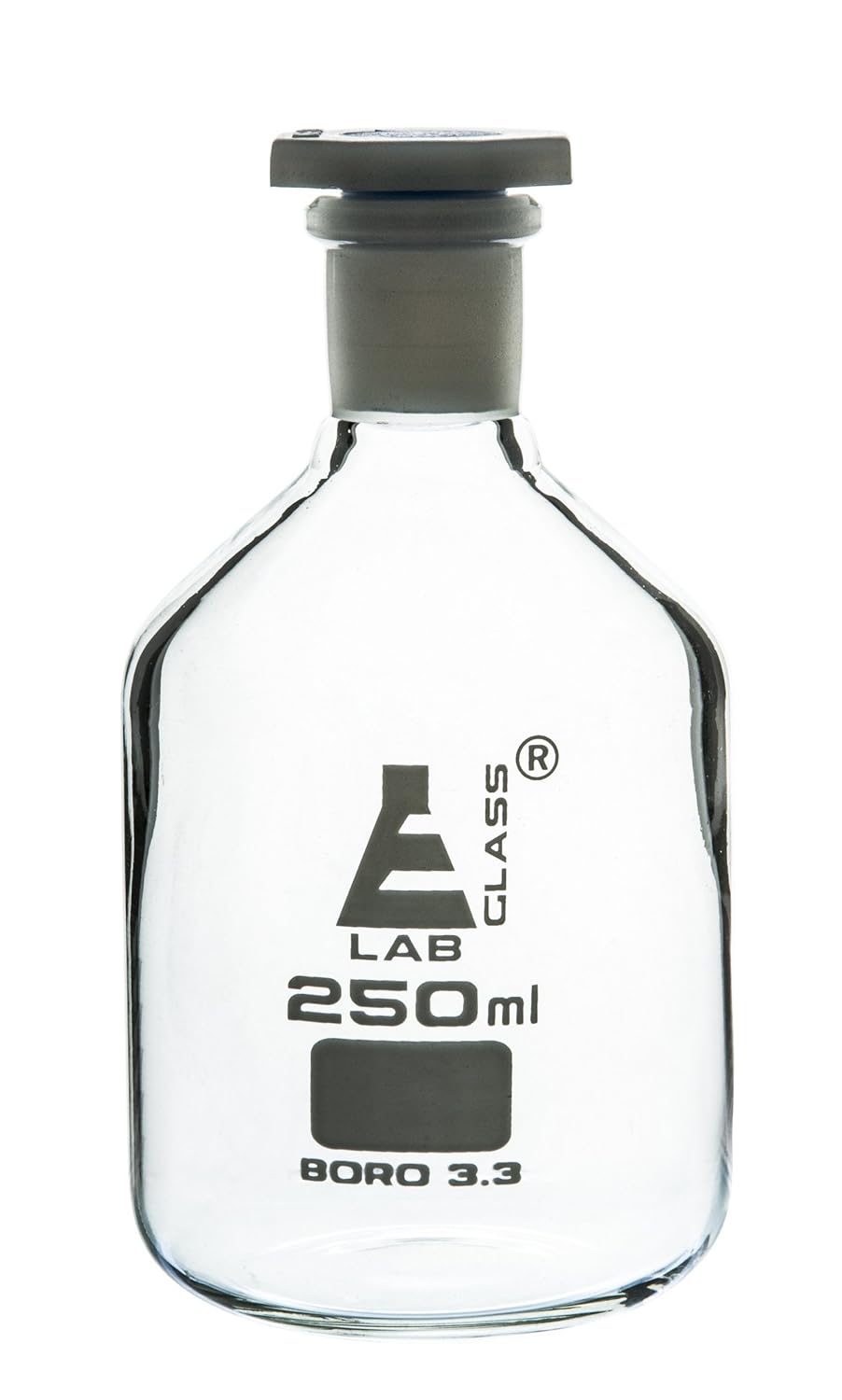 Eisco Labglass CH0160D Reagent Bottle, 250 ml, Narrow Mouth, with Acid Proof Polypropylene Stopper, Borosiliacte Glass, Pack of 6