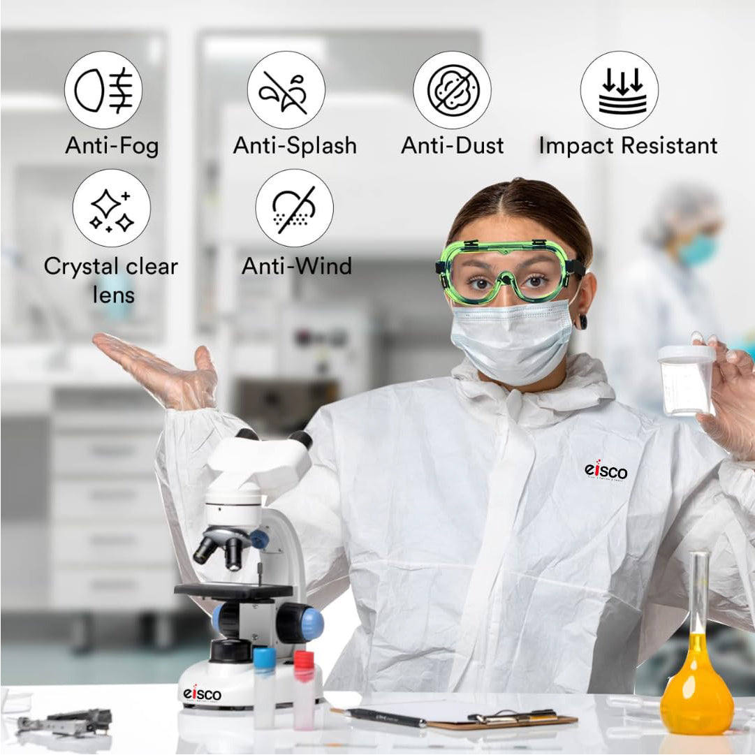 Eisco Safety Goggles – Anti-Fog, Chemical Splash Resistant, Indirect Vent, Fits Over Prescription Glasses, Eye Protection for Lab, Science, Chemistry, Industrial, DIY, Construction & Welding