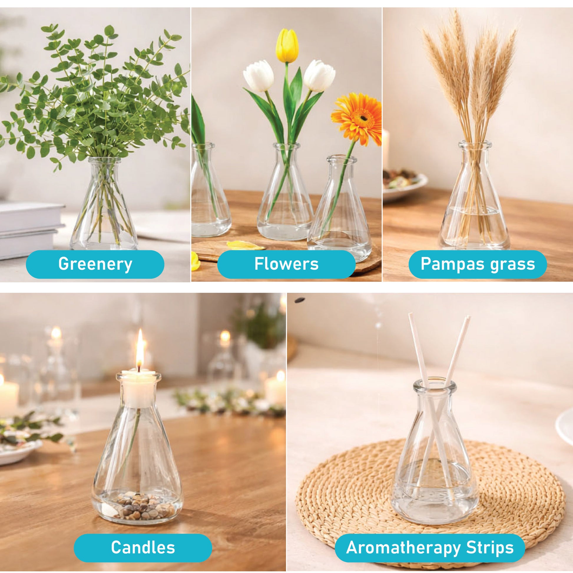 Labzio Home - Elegant Glass Flower vase/Shot flasks for Homes,Offices,cafes,etc, 50ml Each Pack of 4