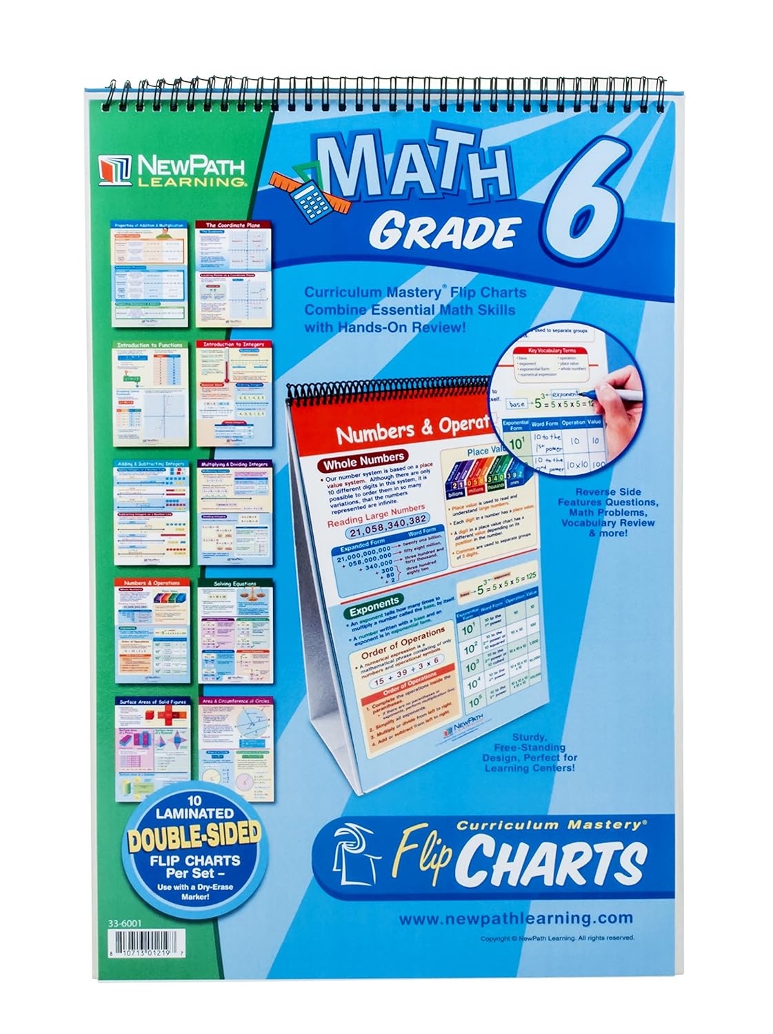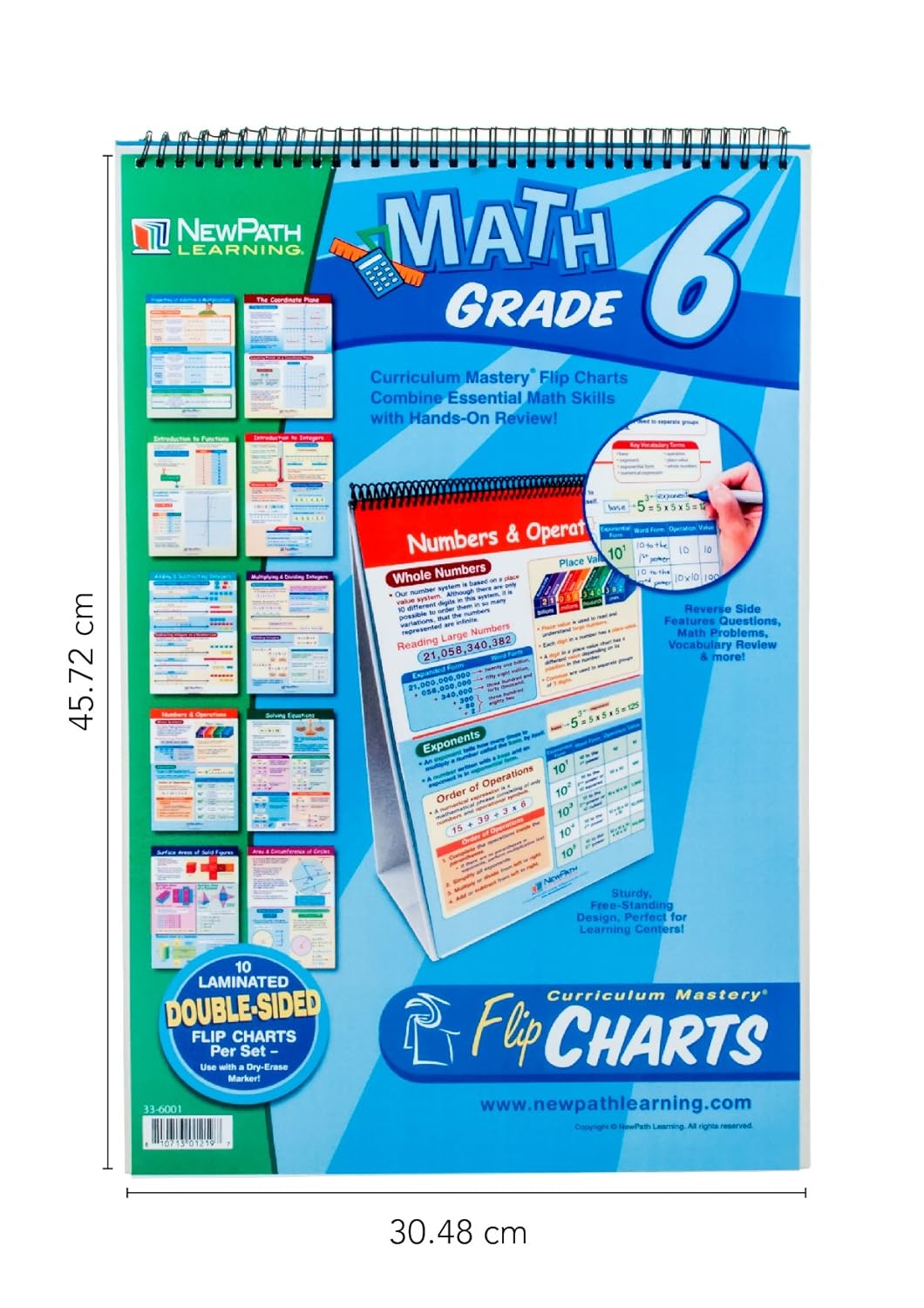 Eisco Grade 6 Maths Educational Flip Charts, 10 Charts With Activity Guide