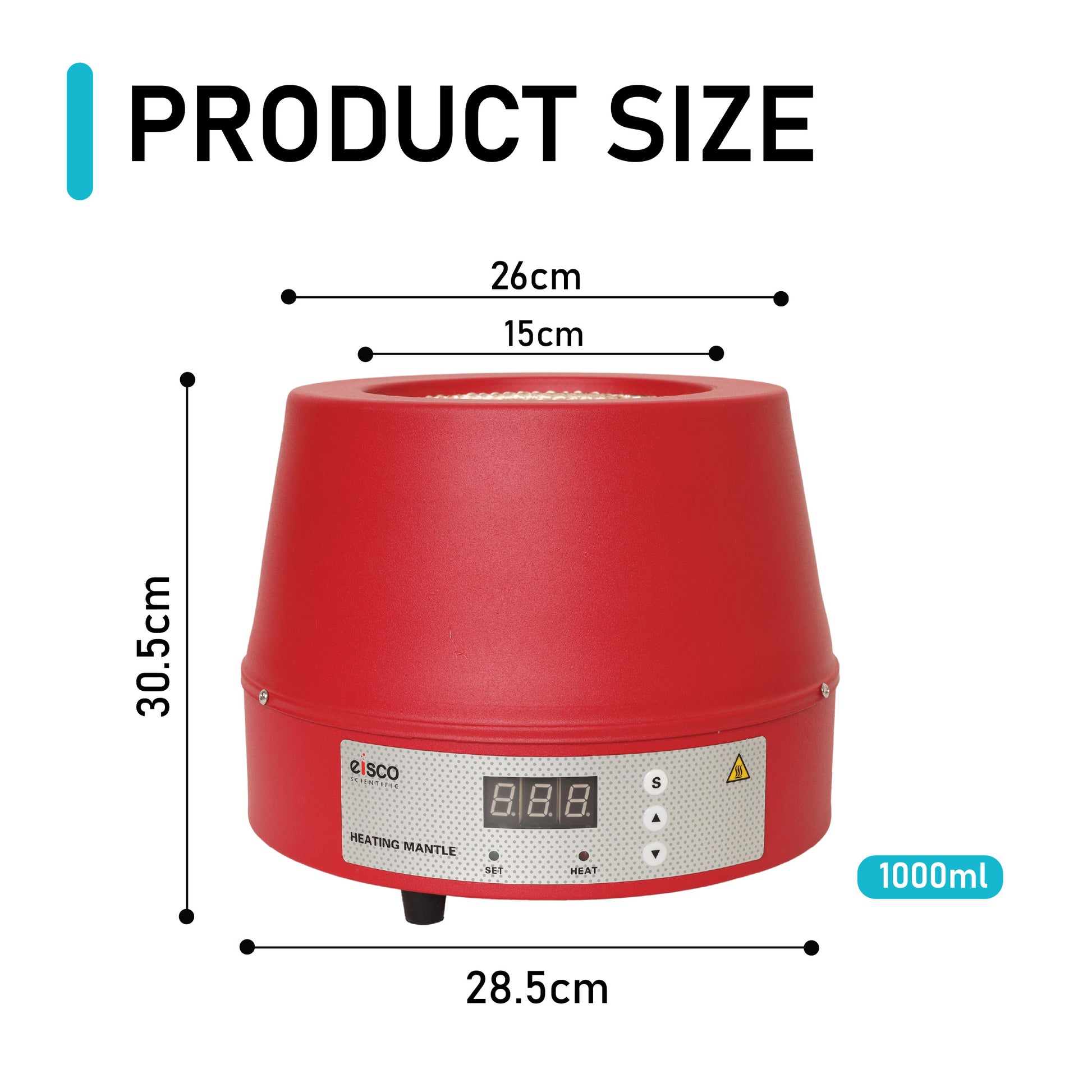 EISCO Premium Heating Mantle with Digital Temperature Display, 1000 ml Capacity, 350W