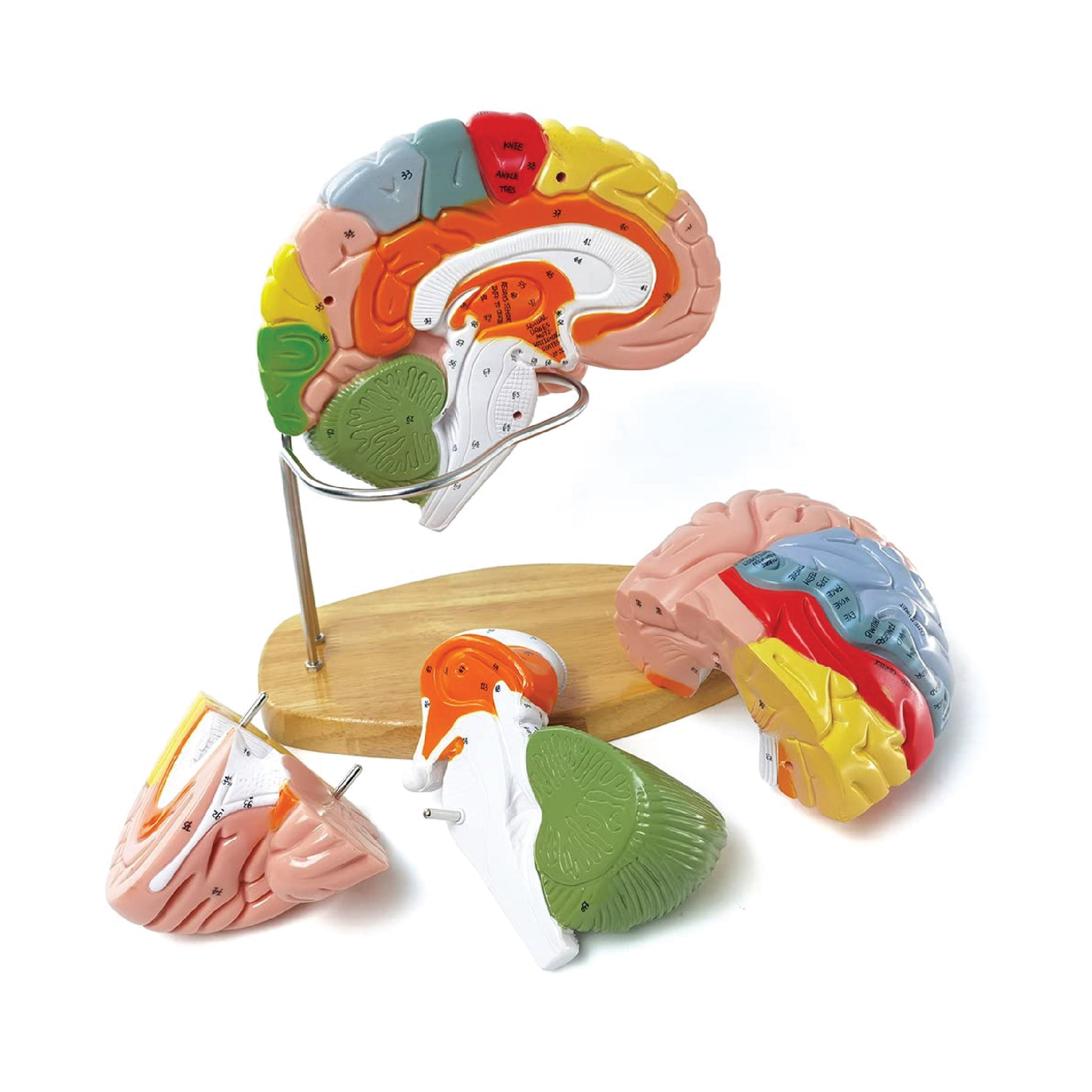 - This 4-part brain model is 1.5 times enlarged, and 130 key structures of the brain model are identified with corresponding key manual