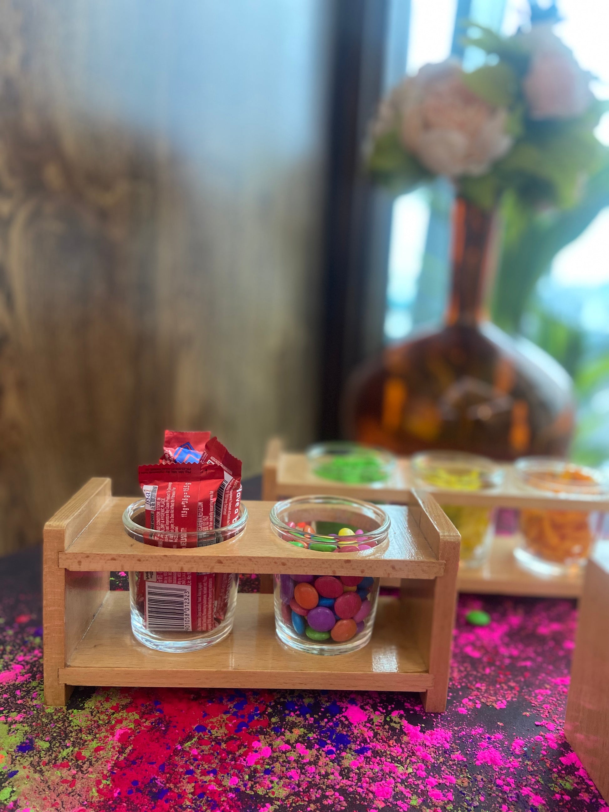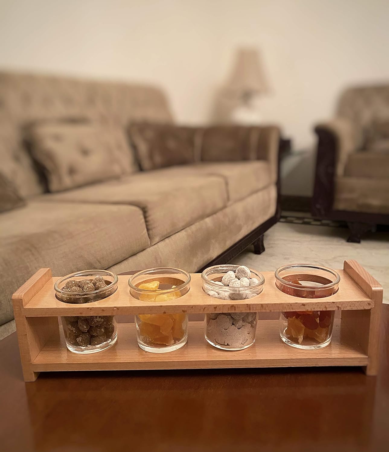 - Smartly made wooden stand with hand blown borosilicate glasses of approx. 100 ml each. Wood is polished for perfect finish.