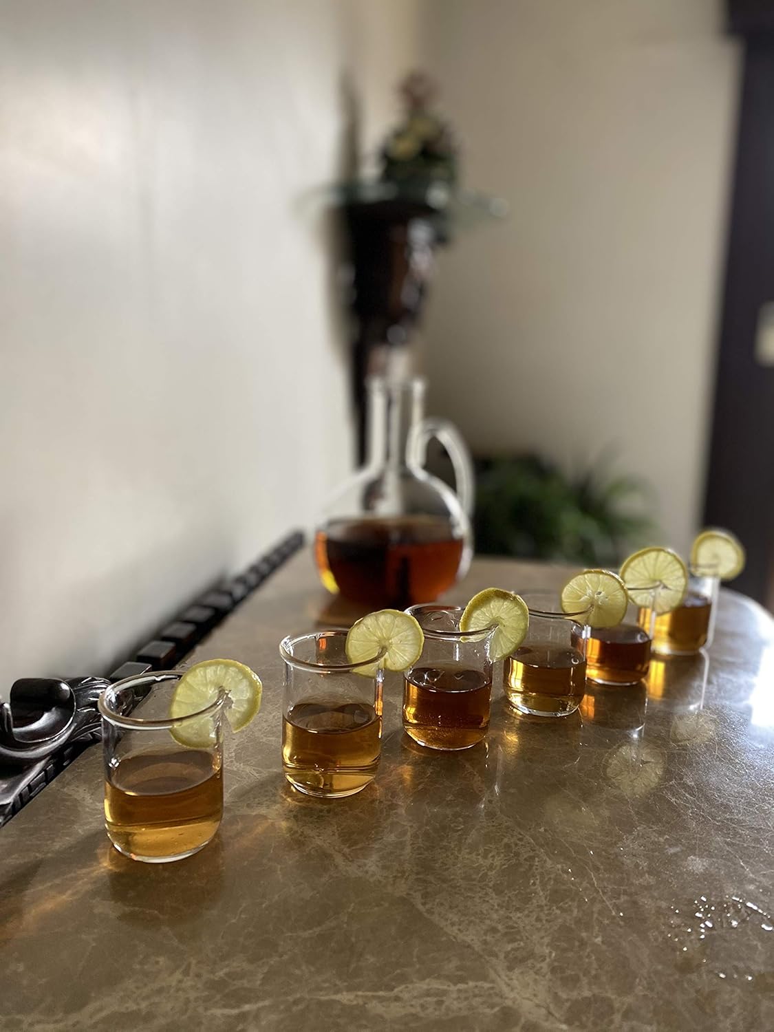 - This elegant glasses is a stylish addition to your kitchen's decor and attract your guest's eyes. Perfect as shot glasses or for Paan shots or any after dinner alcohol.