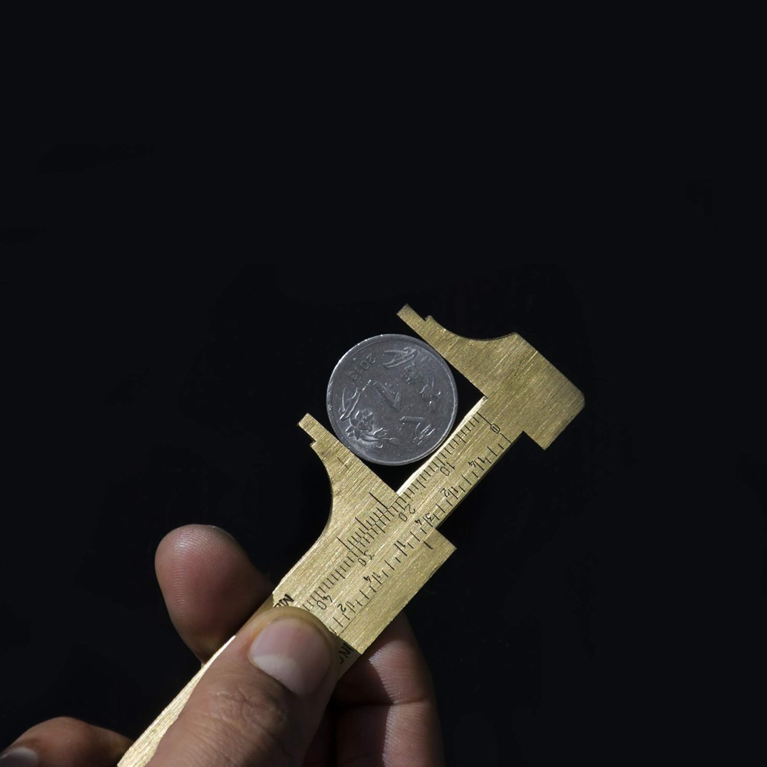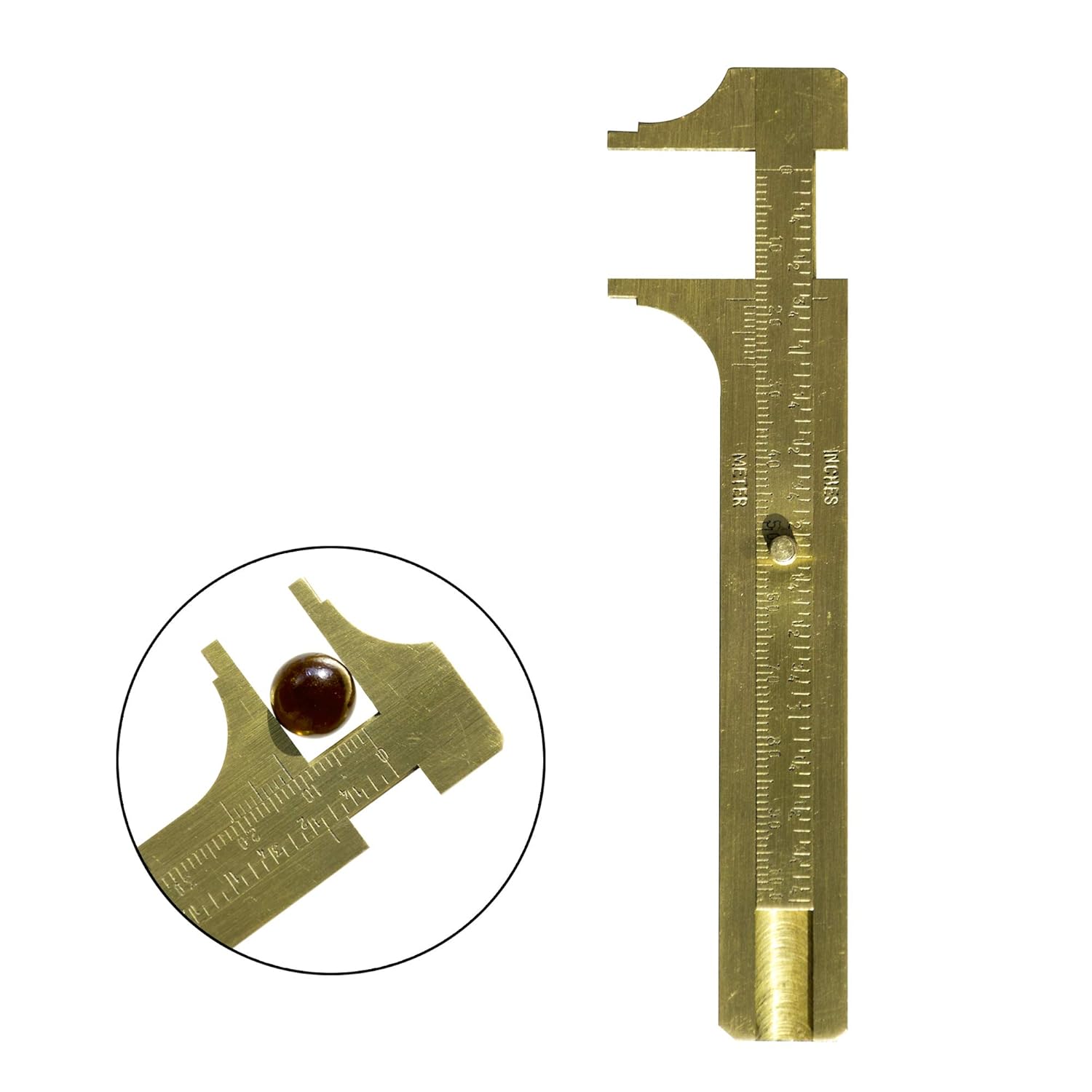 Labzio - Mini solid brass sliding pocket Vernier calliper, double scale to measure gems and jewels, etc