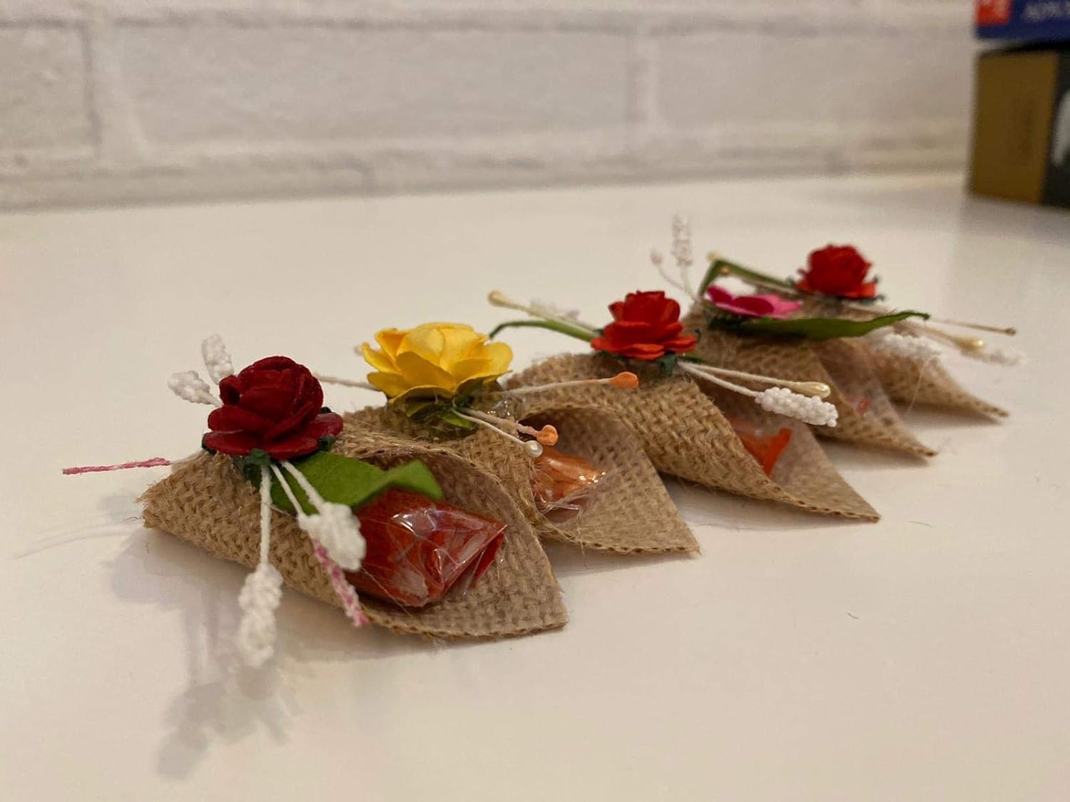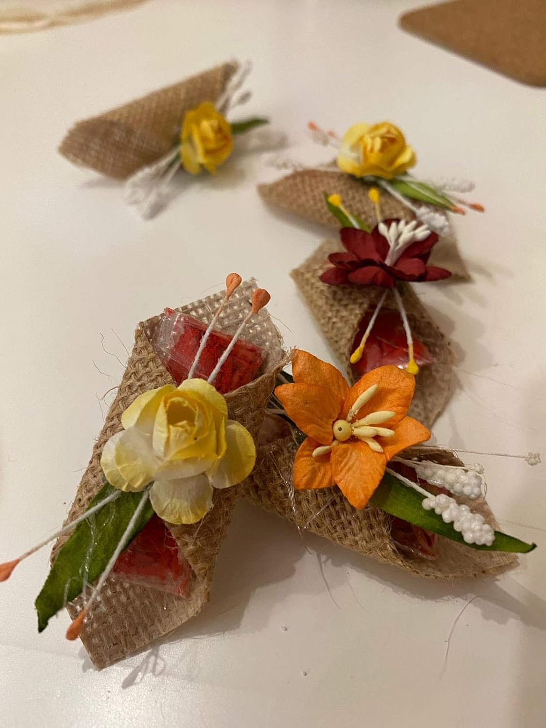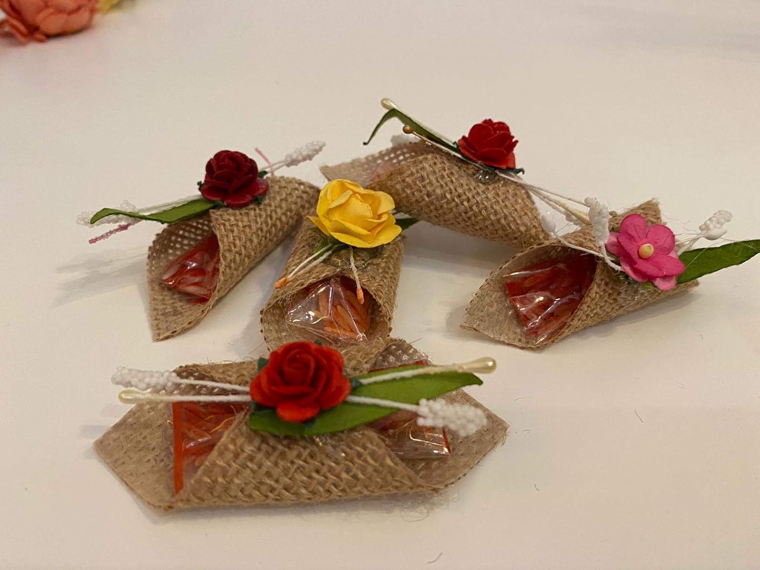 LABZIO Roli Chawal For Tikka — Handmade Jute Potli | Decorated With Beautiful Flower | Perfect For Rakhabandhan, Bhai Dooj And Other Occasion/Festivals | Pack Of 5