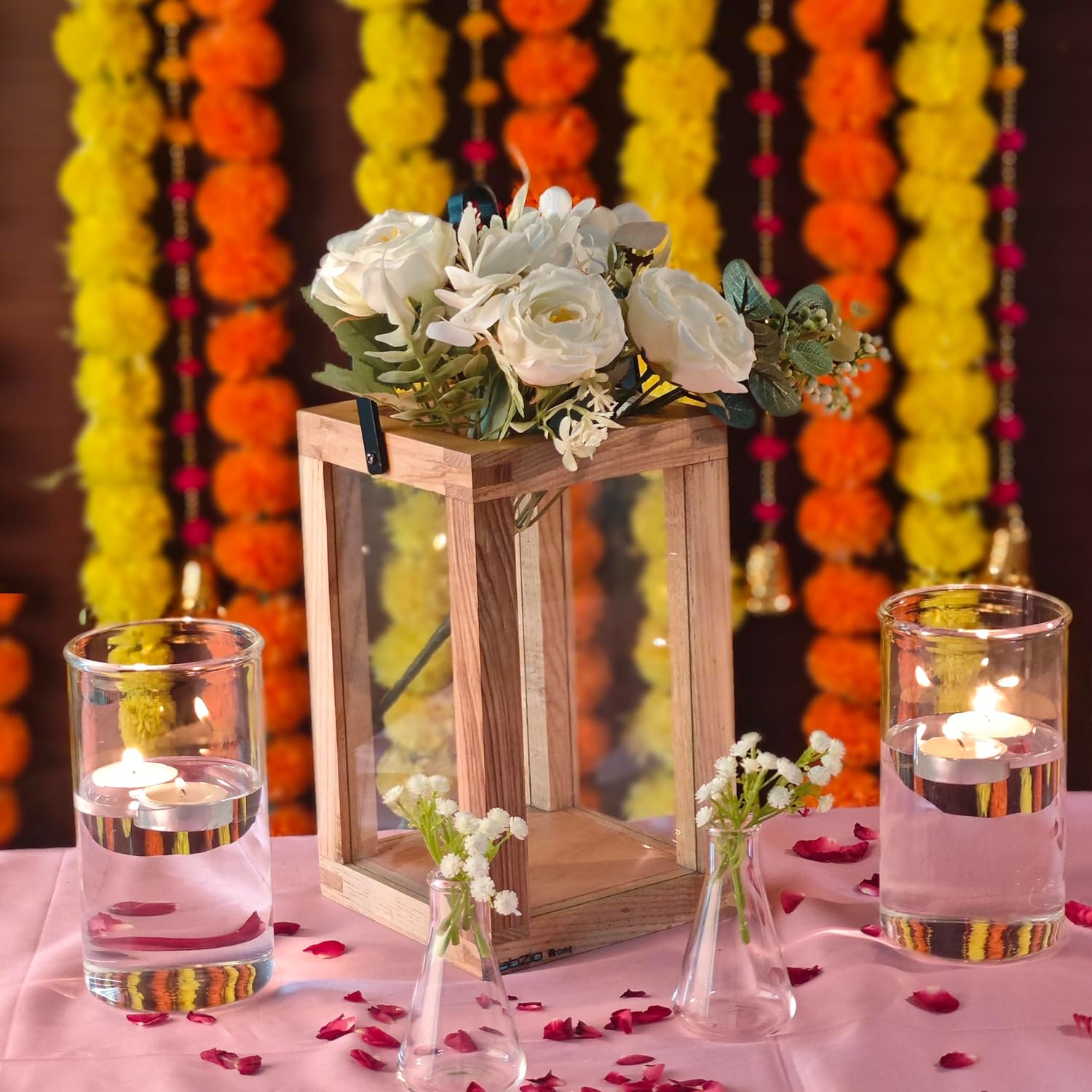 Labzio : Wooden Candle Stand and Glass Vase Home Decor Festival Set