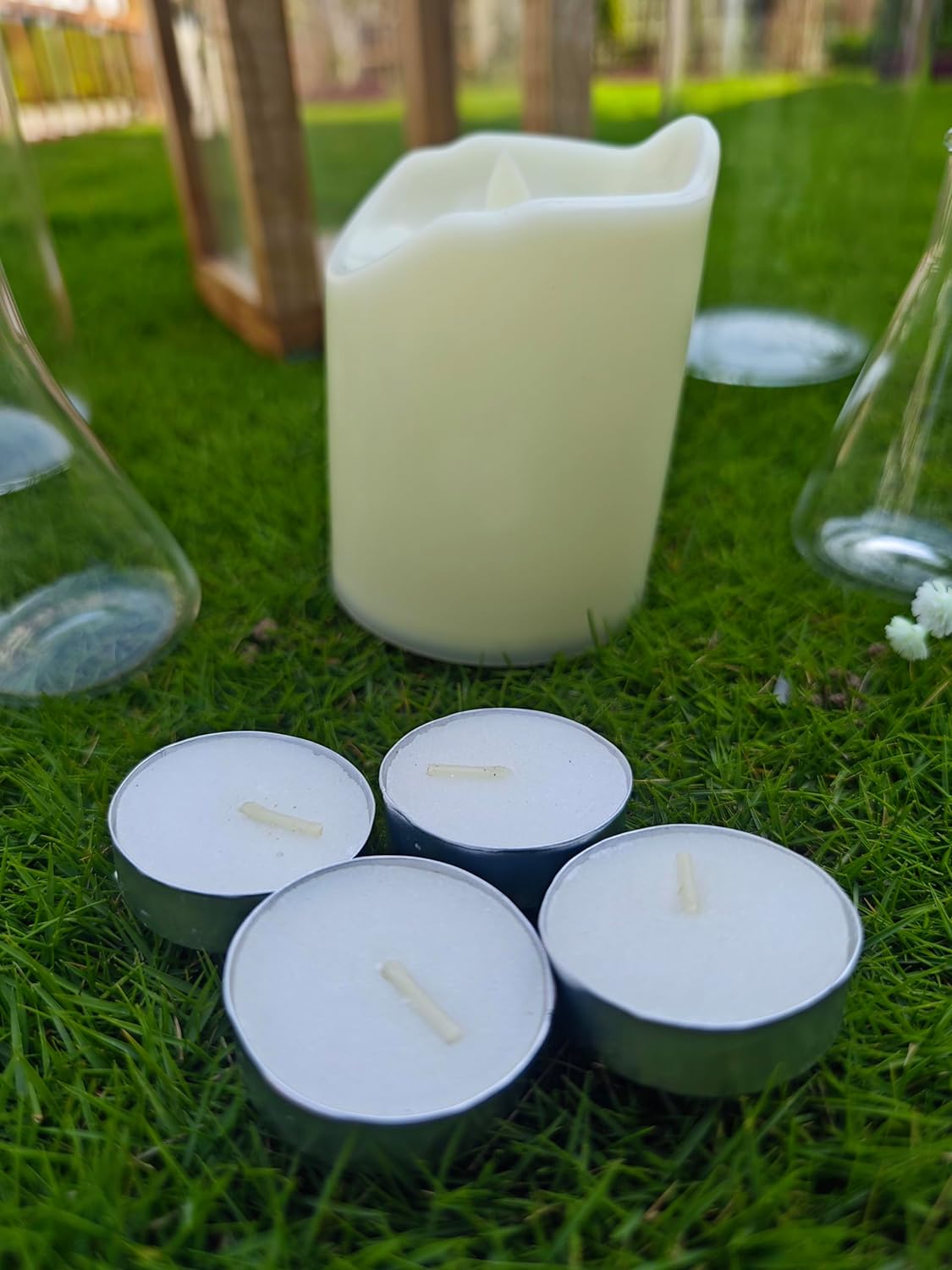 - 4 Tea Candles with Small White Flowers: Create a dreamy atmosphere with these tea candles adorned with delicate white flowers.