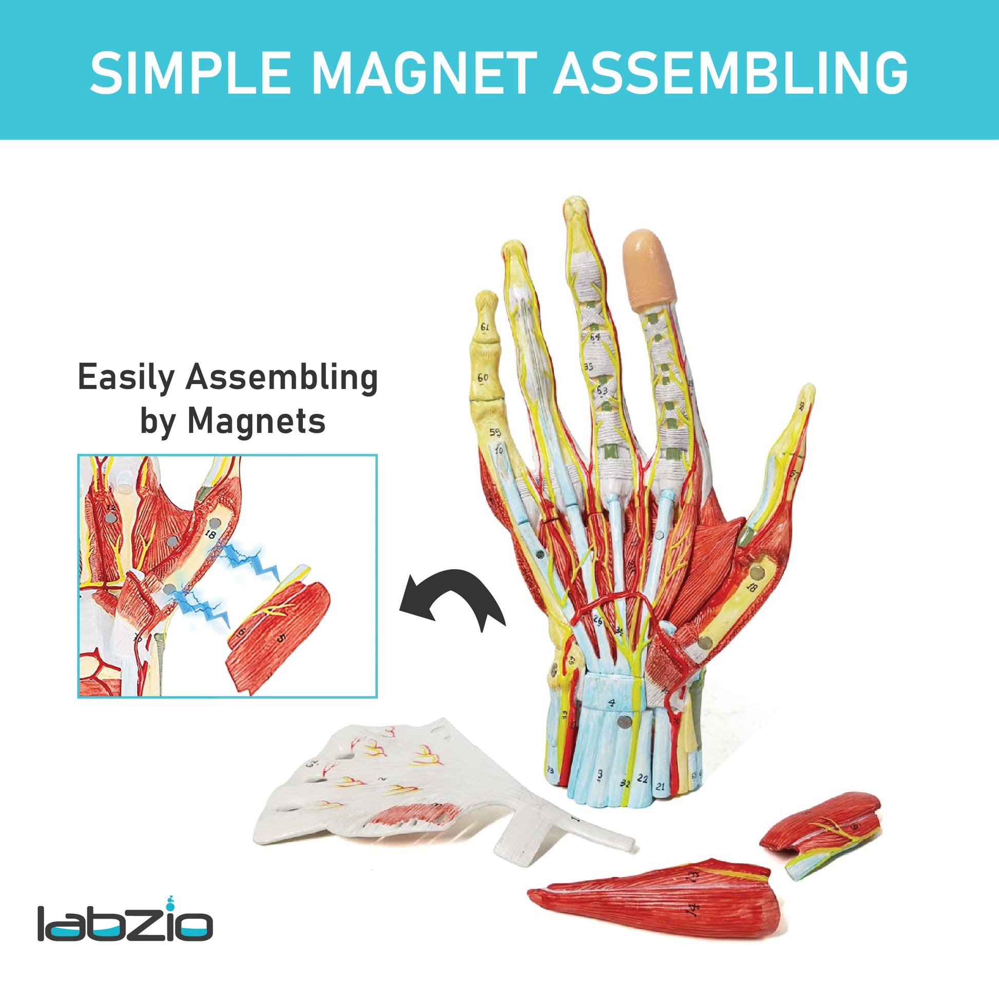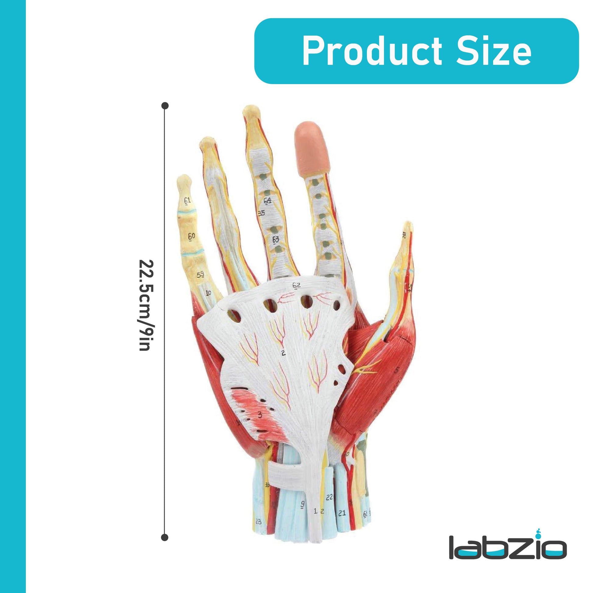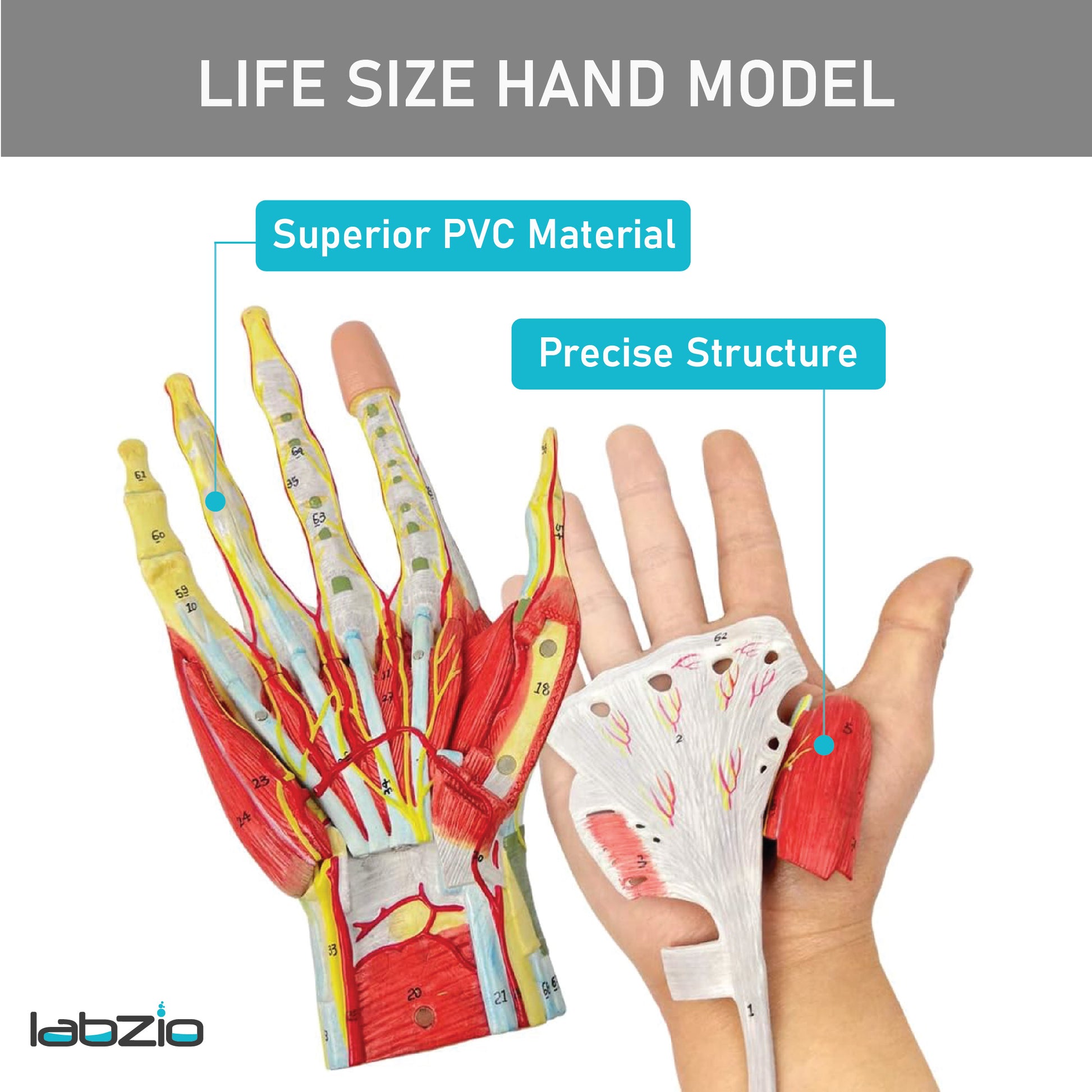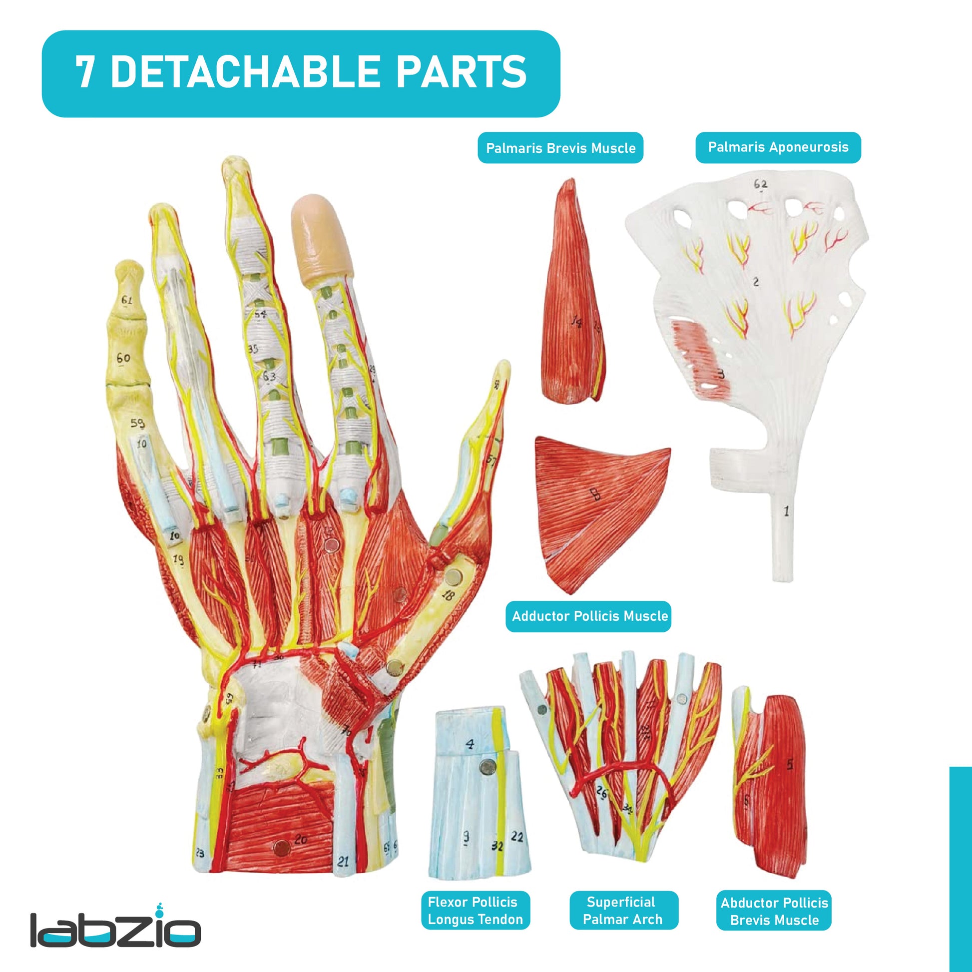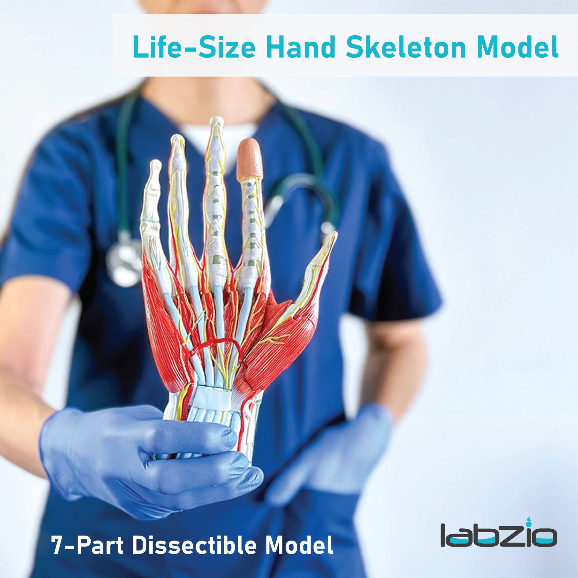 LABZIO Life-Size Hand Skeleton Model | 7-Part Anatomical Model with Ligaments, Muscles, Nerves & Arteries | Medical Study Model for Students, Physiotherapy, Orthopedic & Chiropractic Education