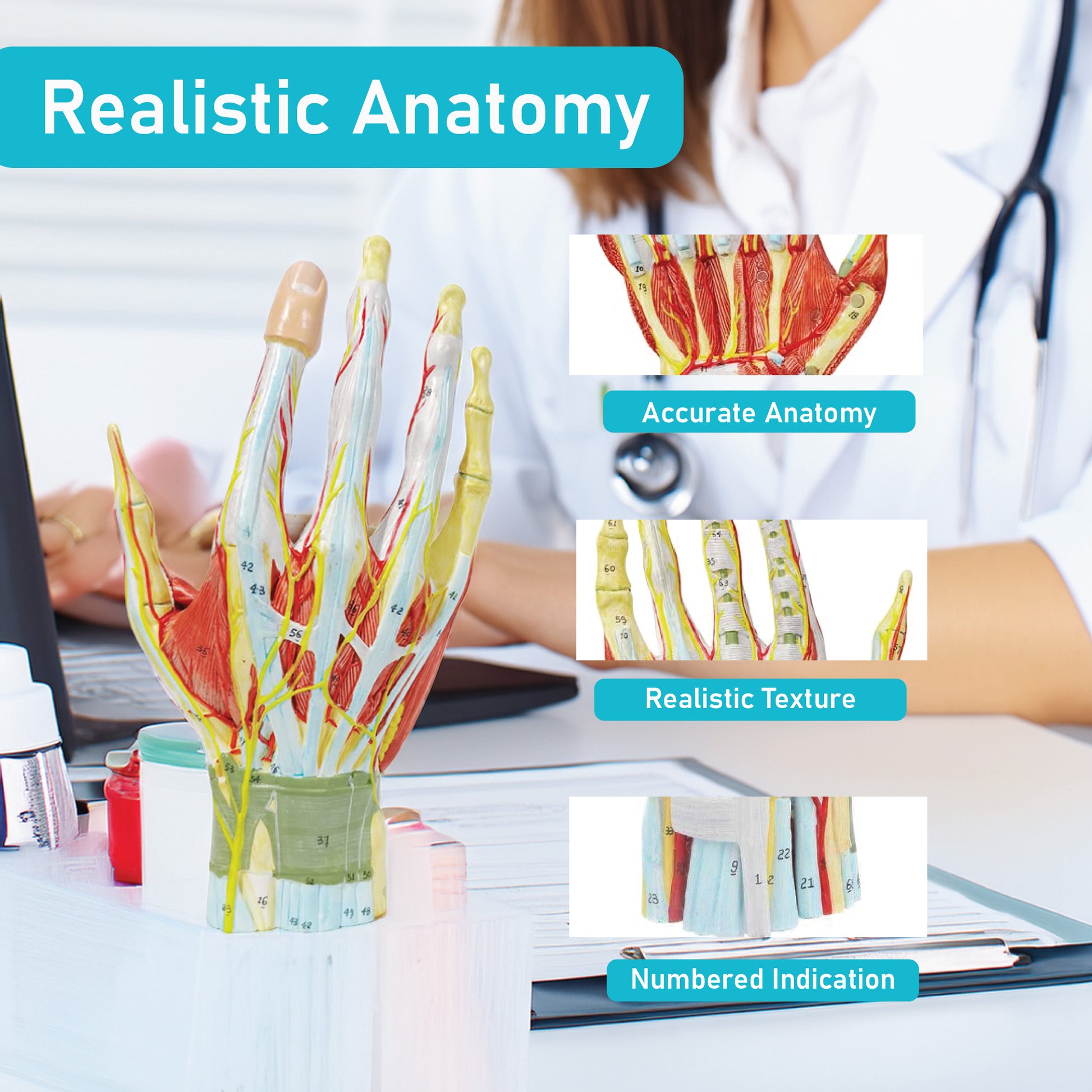 - It is a perfect model to learn the bones, muscles, ligaments, nerves, arteries and veins of a human hand