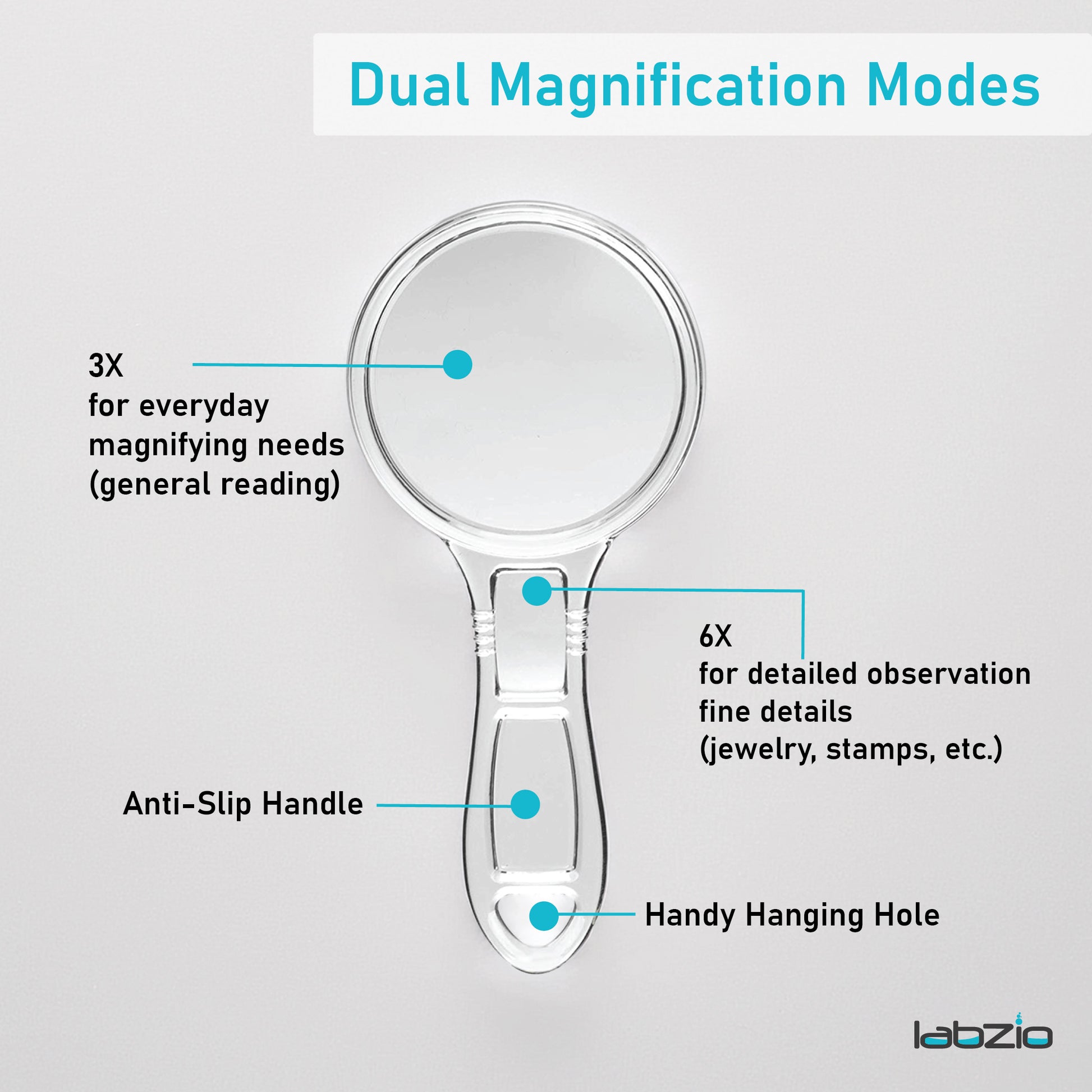 Labzio - Premium magnifying lens with handle, lab quality, Diameter - 50 mm, Magnification - 3X, 6X, acrylic lens and body makes it suitable for Children ( PACK OF 5 )